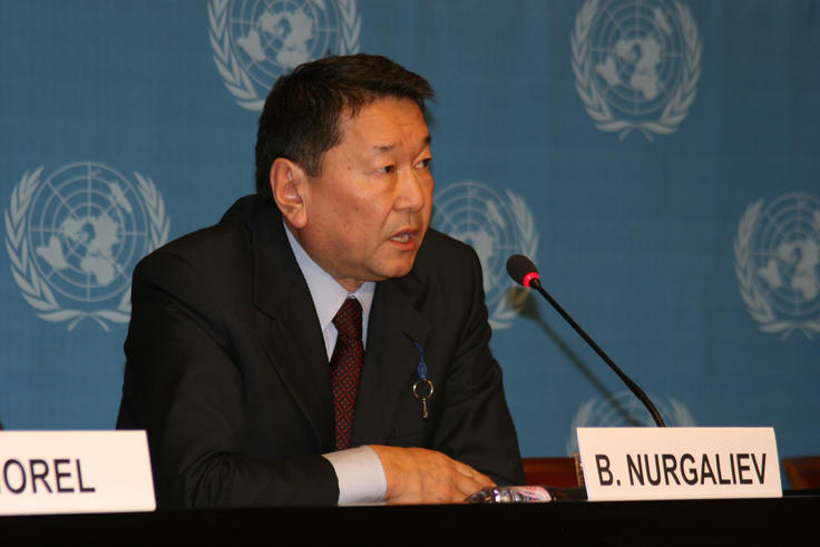 Ambassador Bolat Nurgaliyev, the Special Representative of the OSCE Chairperson-in-Office, speaks at a news conference following the ninth round of the Geneva Discussions. Geneva, 28 January, 2010.