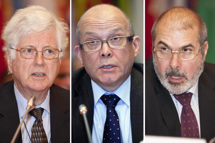 L-r: The Co-Chairs of the Geneva International Discussions, Pádraig Murphy, the OSCE Chairmanship’s Special Representative for the South Caucasus; UN Representative Antti Turunen; and EU Special Representative Philippe Lefort speaking at the OSCE's Permanent Council in Vienna, 1 November 2012.