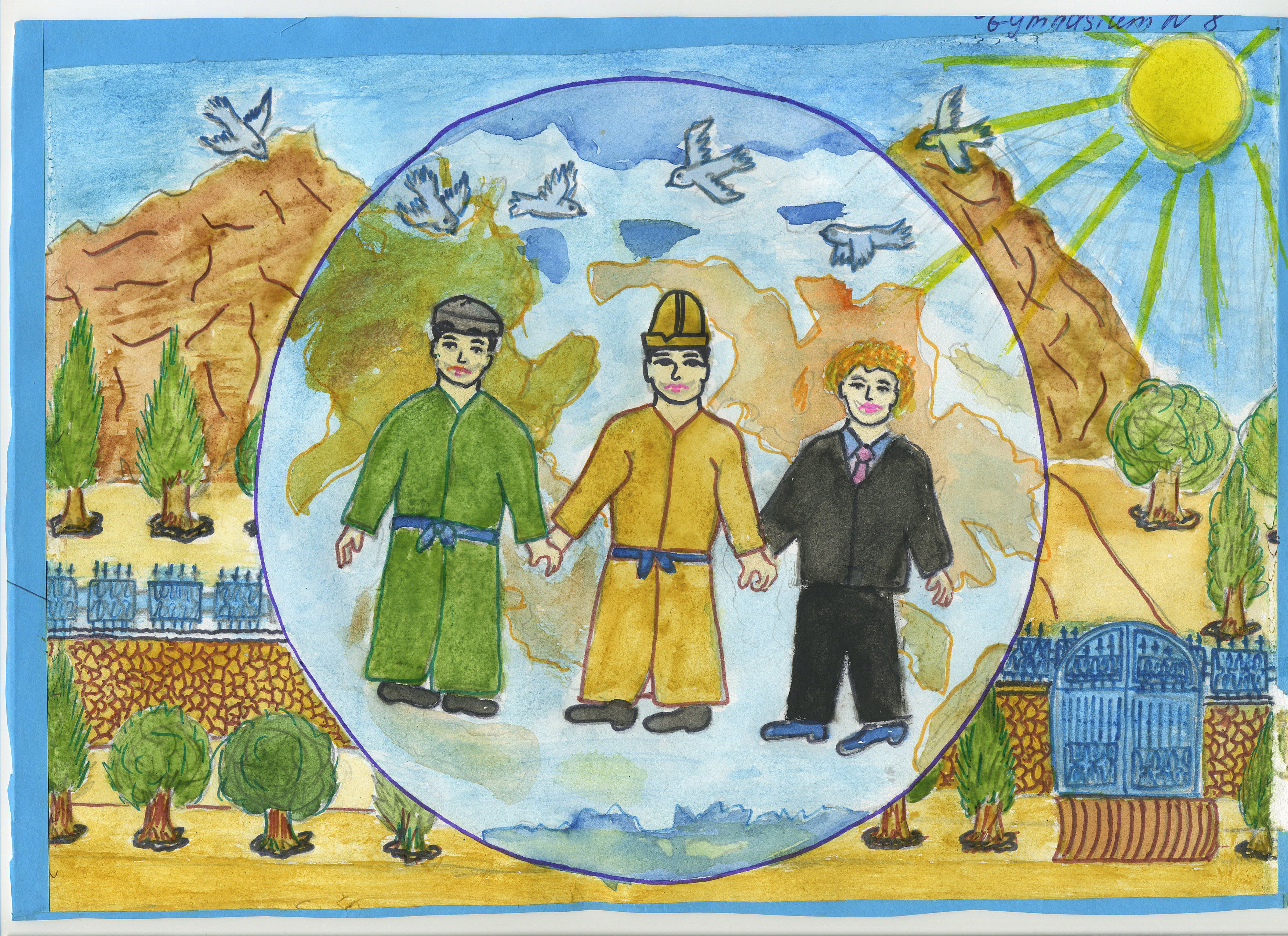 A painting by 14 year-old Avaz Raimzhanov from an OSCE HCNM-supported drawing competition in Osh, Kyrgyzstan, launched in April by the Centre for Multilingual and Multicultural Education.