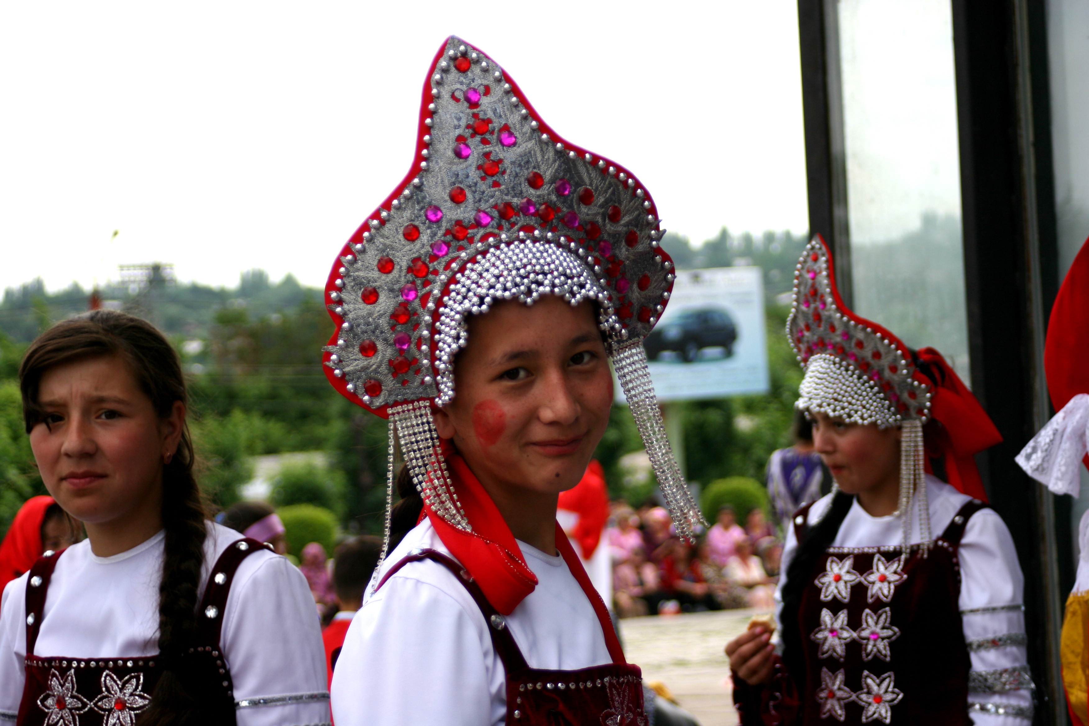 A girl wearing a 'kokoshnik,' a traditional Russian head-dress, at 'The Colours of Friendship' drawing competition held by the HCNM-supported Centre for Multilingual and Multicultural Education in Osh, Kyrgyzstan, 1 June 2008.