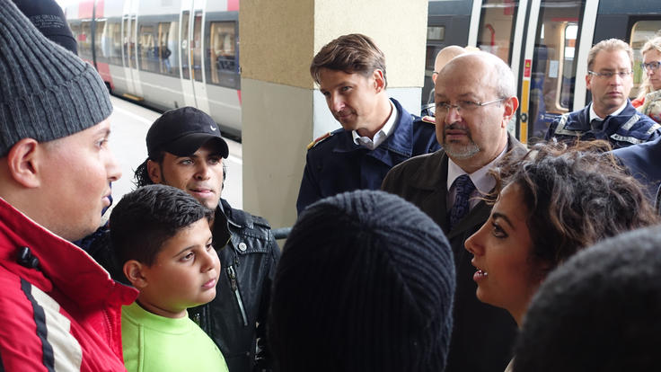Images illustrating a simulation-based training exercise on combating human trafficking along migration routes.
