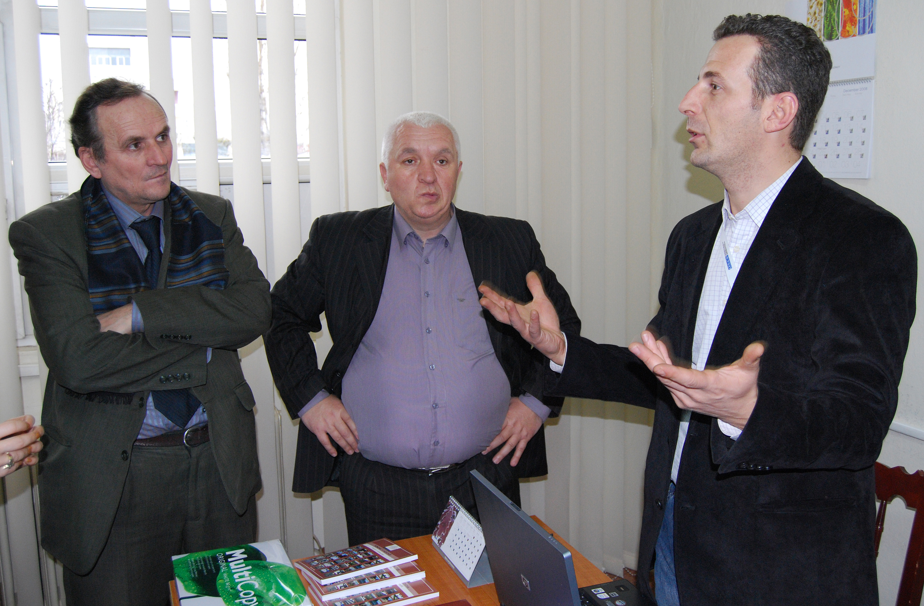 Mentor Zeka (r) of the OSCE municipal team for Prishtine/Prstina welcomes attendees to the inauguration of the Mission in Kosovo-supported municipal legal library, Prishtine/Prstina, 27 January 2009.