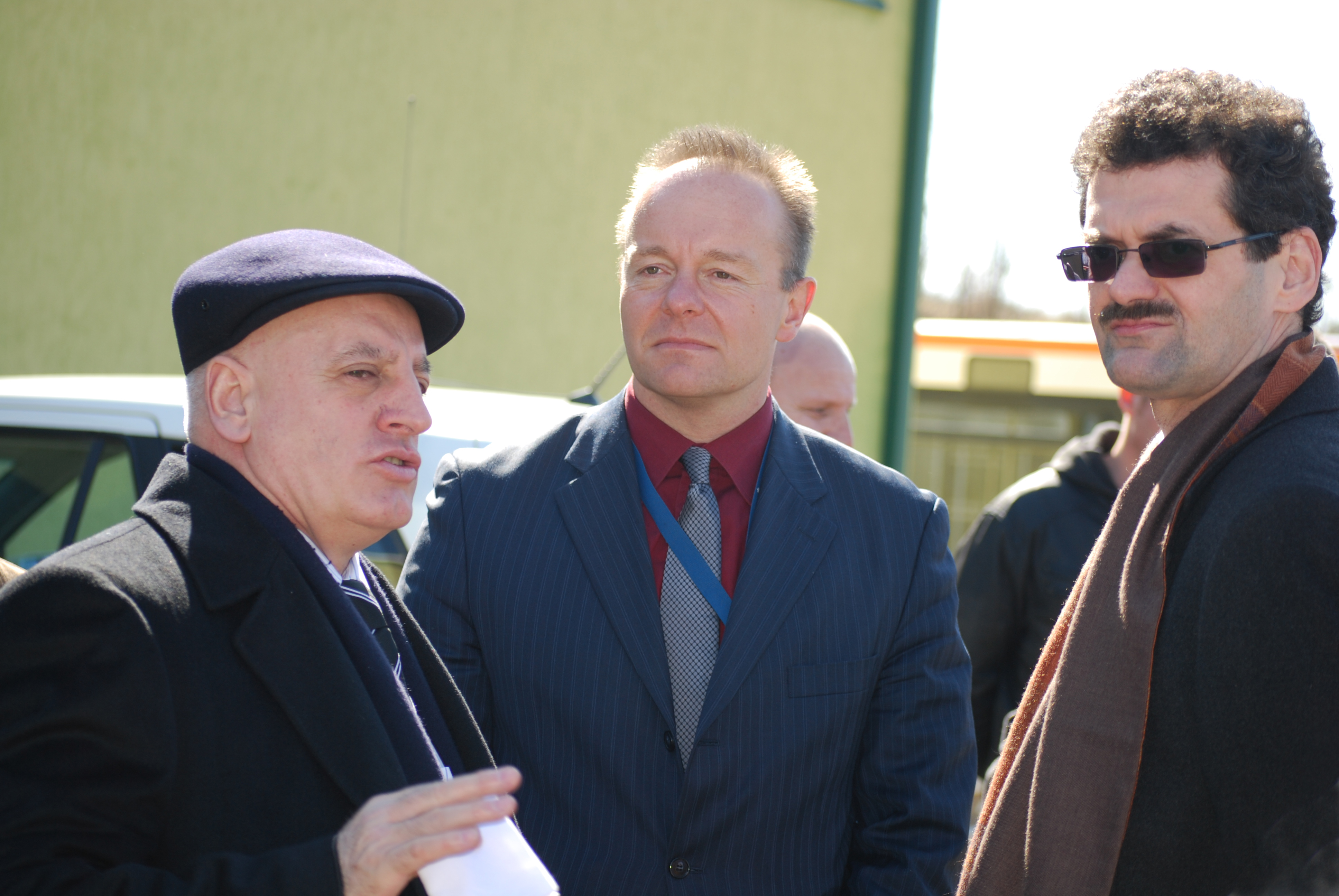Ambassador Werner Almhofer (r), Head of the OSCE Mission in Kosovo, Heinz Schneider, Chief of the Mission's Public Safety Development Section (c), talk to Sheremet Ahmeti, Director of the Kosovo Police Service, Vushtrri/Vucitrn, 9 March 2009.