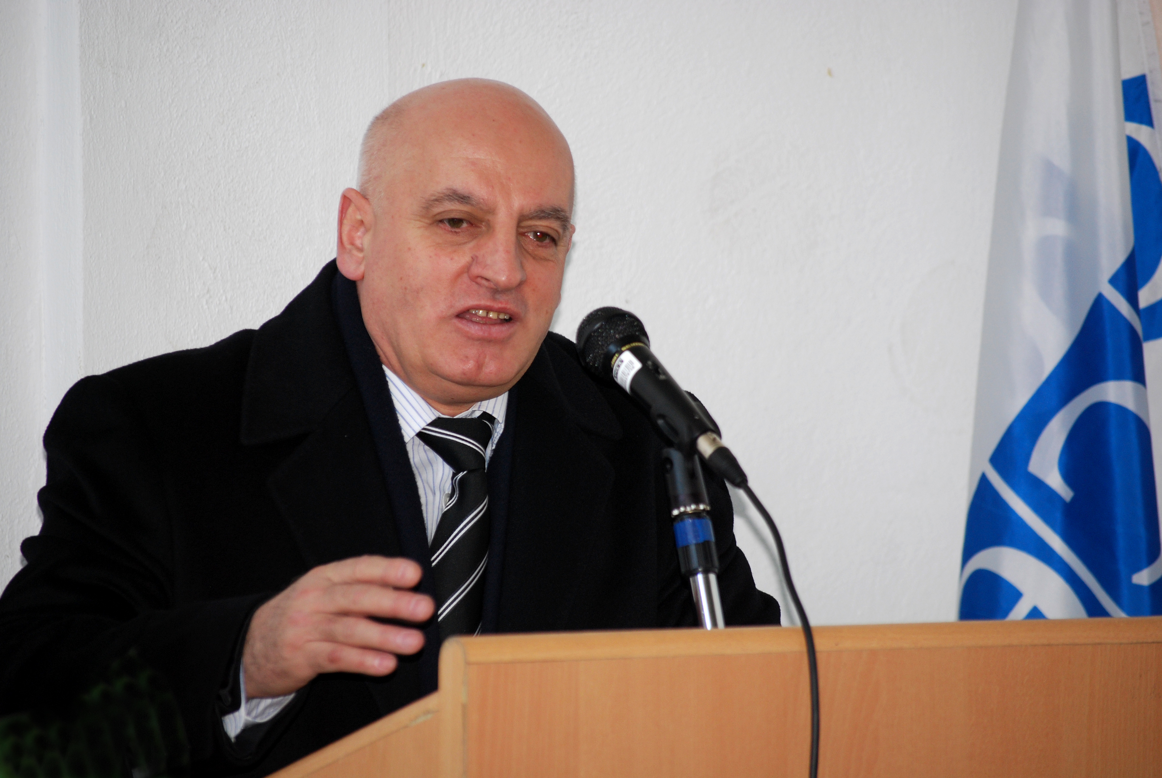 Sheremet Ahmeti, Director of the Kososvo Police Service, thanks the OSCE for the donation of first aid bags to the Fire and Rescue Station in Vushtrri/Vucitrn, 9 March 2009.