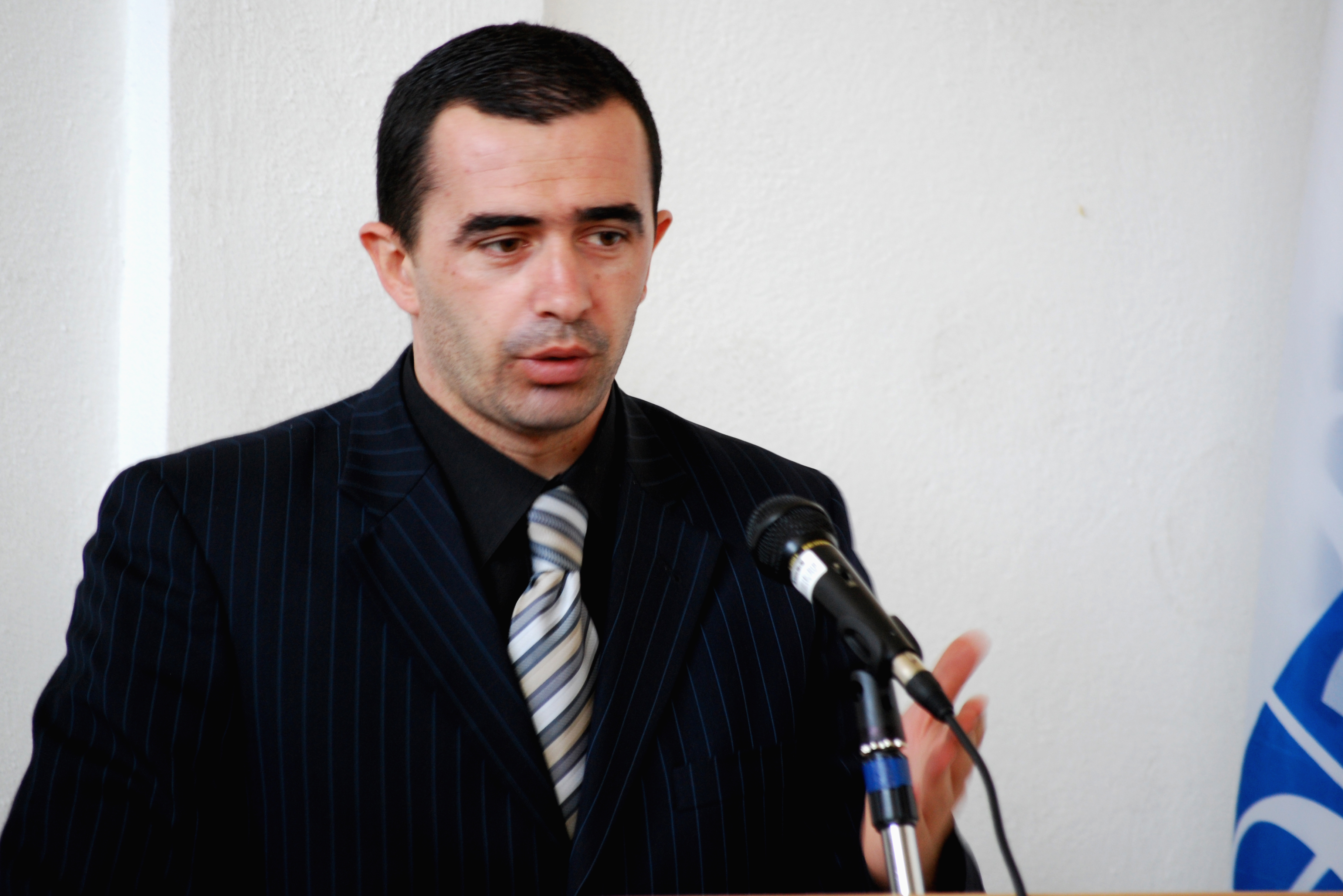 Bardhyl Jashari, permanent secretary of the Ministry of Internal Affairs, at the handover ceremony of OSCE-donated first aid bags to the Fire and Rescue Station in Vushtrri/Vucitrn, 9 March 2009.