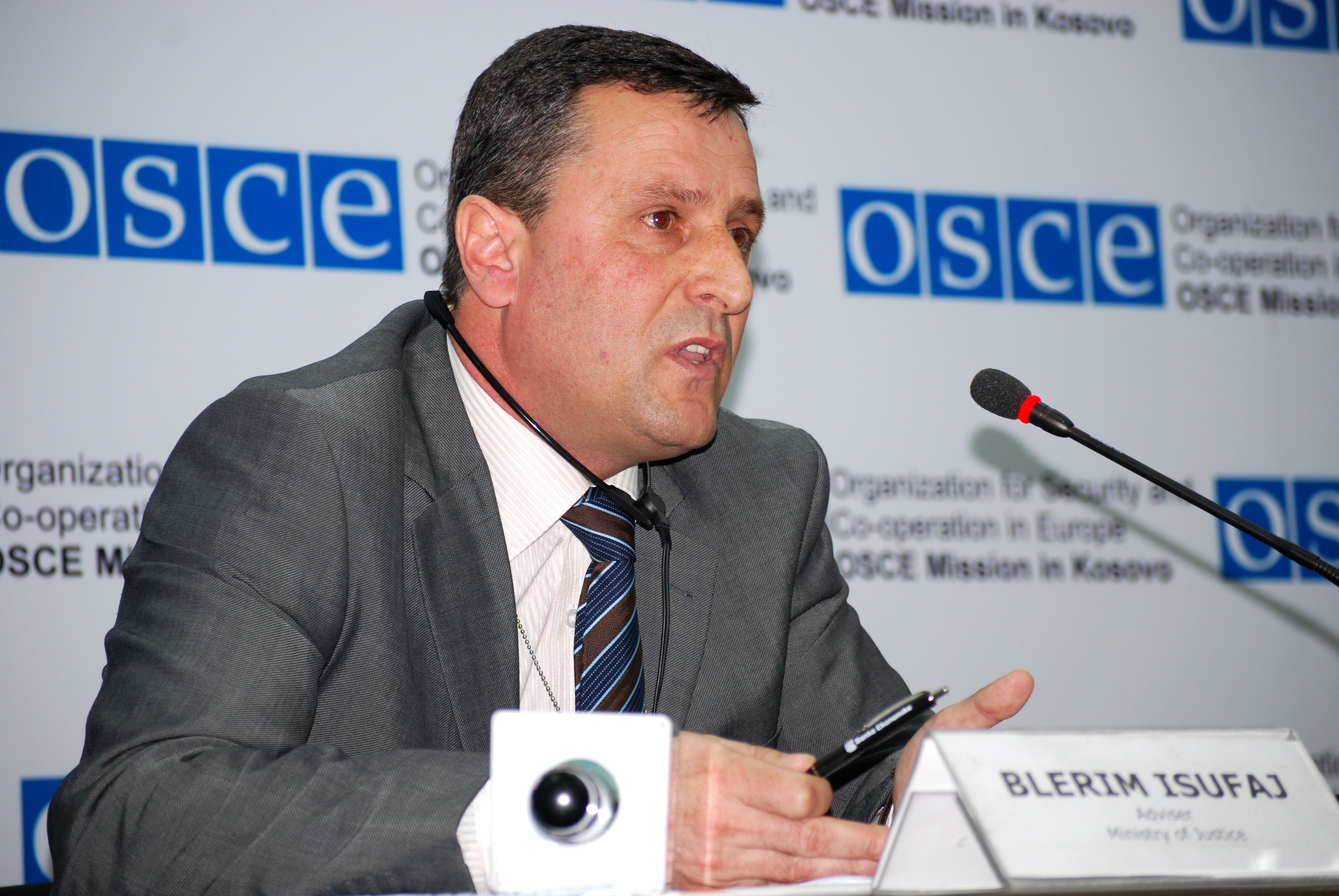 Blerim Isufaj, Adviser at Kosovo's Justice Ministry, answers a question at an OSCE press conference to announce the release of a report addressing disputes over immovable property rights, Prishtine/Pristina, 6 April 2009.