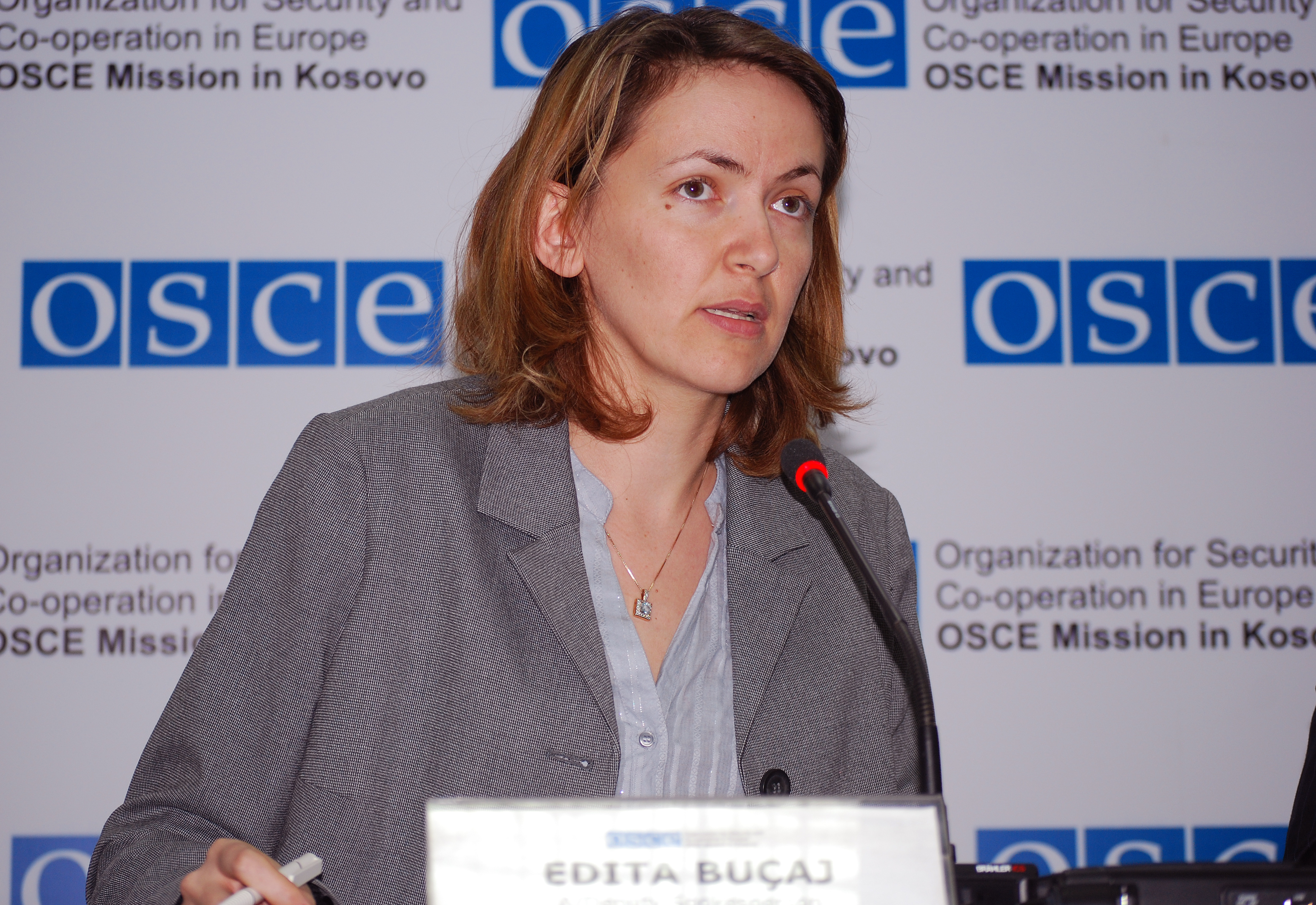 Edita Bucaj, the Mission in Kosovo's Deputy Spokesperson, at a press conference on the release of a report addressing disputes over immovable property rights in Kosovo, Prishtine/Pristina, 6 April 2009.