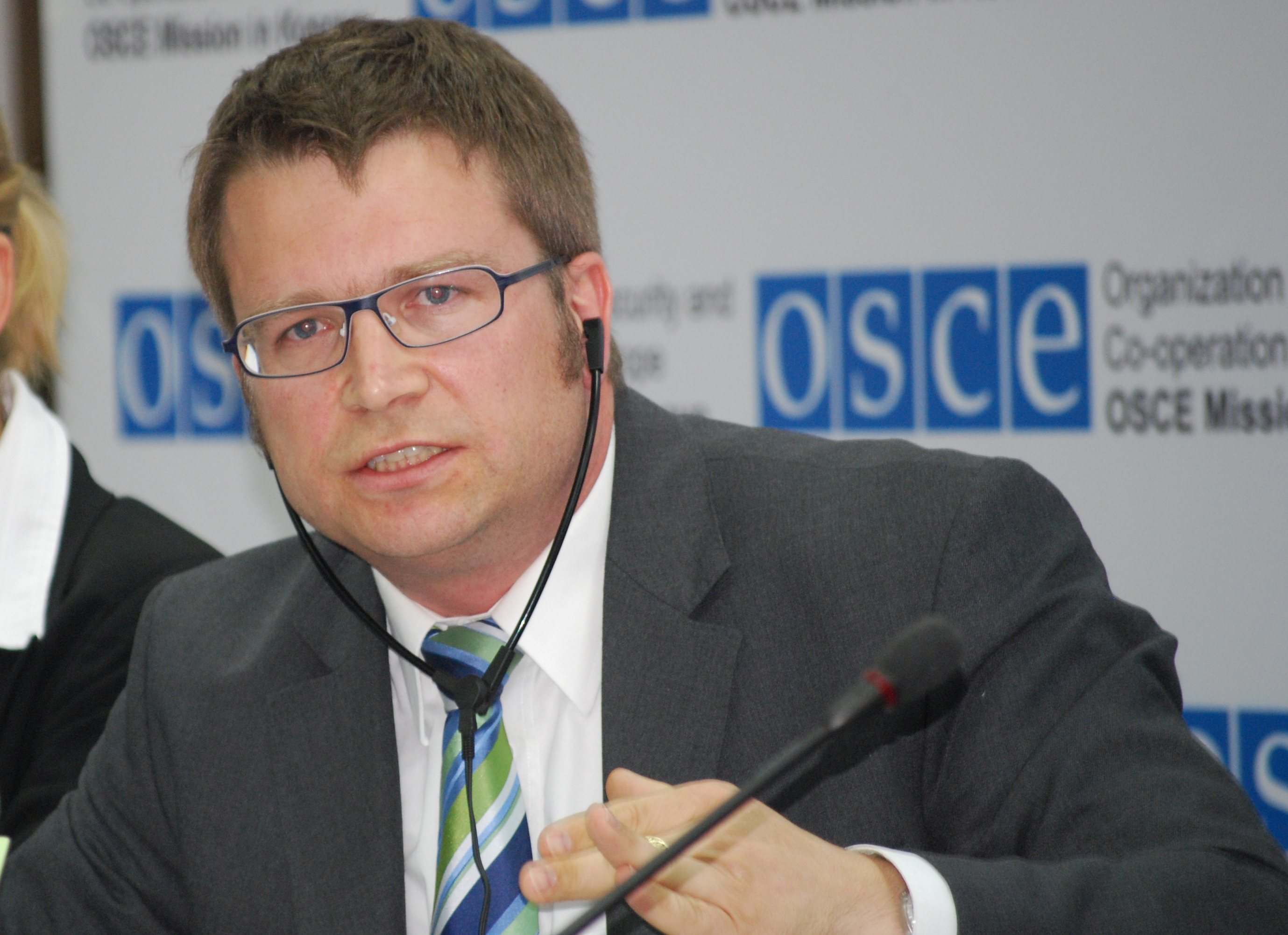 Deputy Director of the OSCE Mission in Kosovo's Human Rights and Communities Department, Michael Mors, at a press conference on the Mission's report on non-majority communities in the Kosovo education system, Prishtine/Pristina, 29 April 2009.