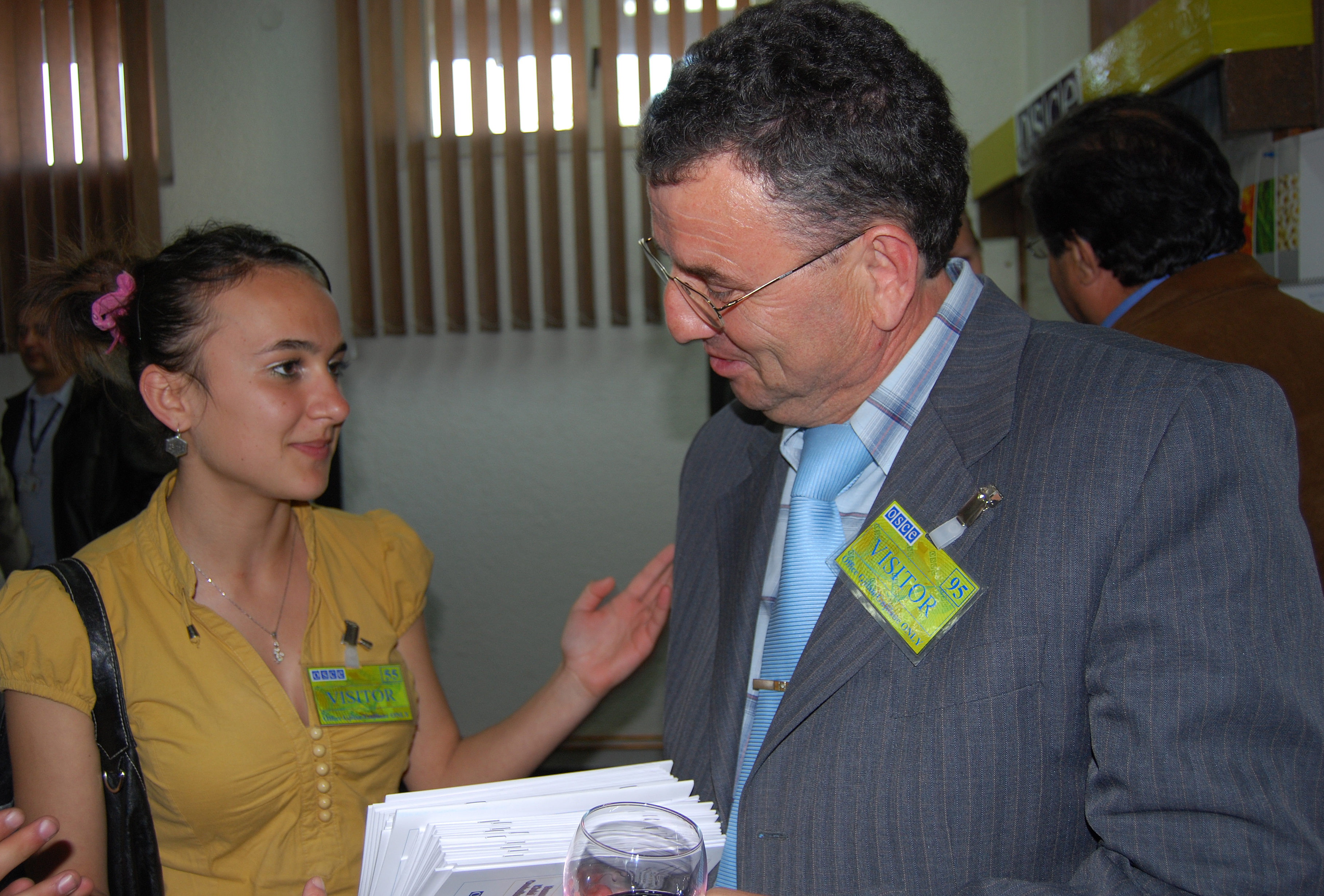 A member of the Human Rights Club from Gjilan/Gnjilane (l) distributes human rights booklets to visitors at a photo exhibition organized by the Club and supported by the OSCE Mission in Kosovo, Gjilan/Gnjilane, 27 April 2009.