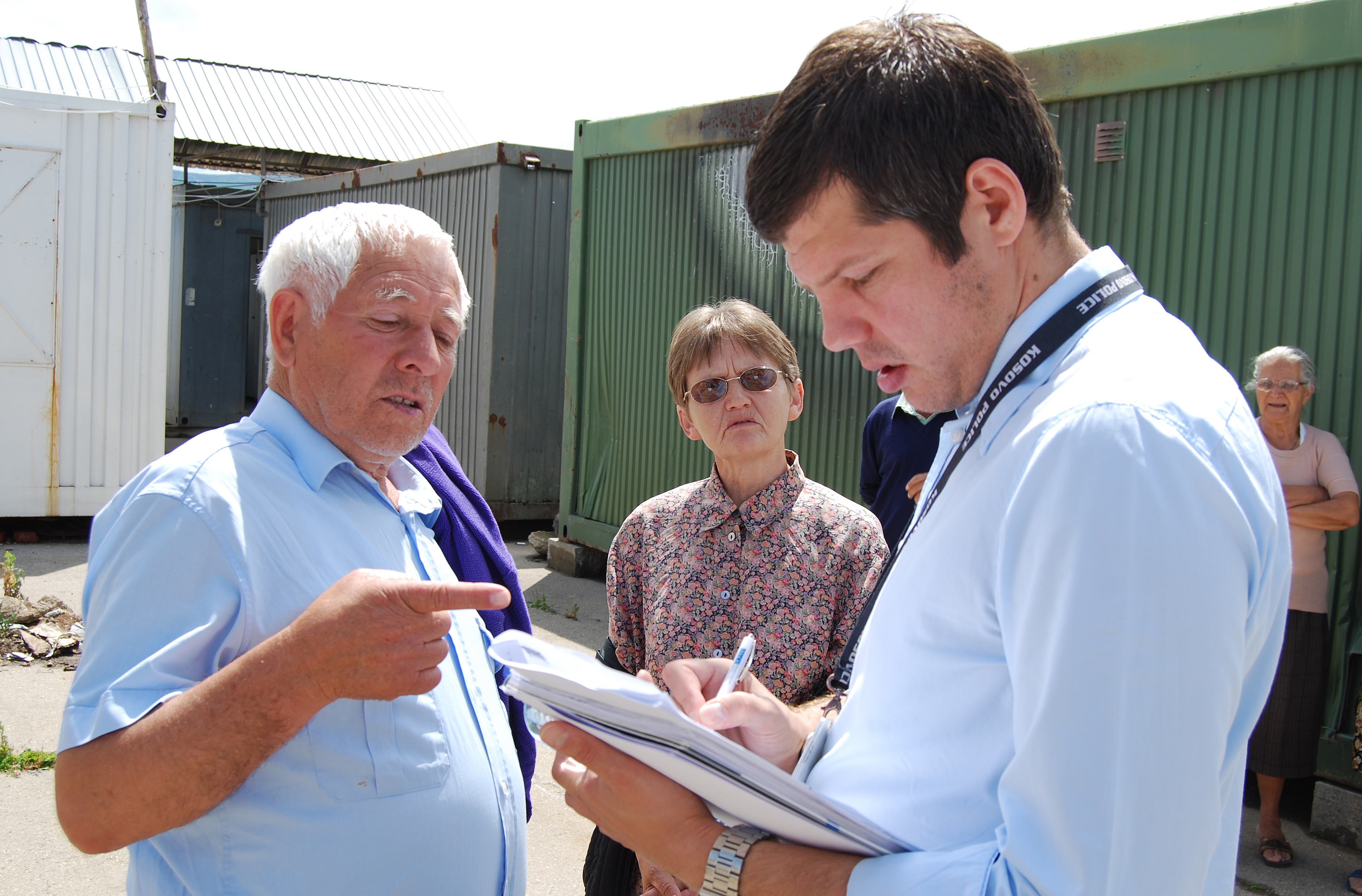 OSCE Mission in Kosovo Senior Public Affairs Officer Nikola Gaon (r), talks to a resident of the Vocar settlement, Gracanice/Gracanica, Kosovo, 18 June 2009.