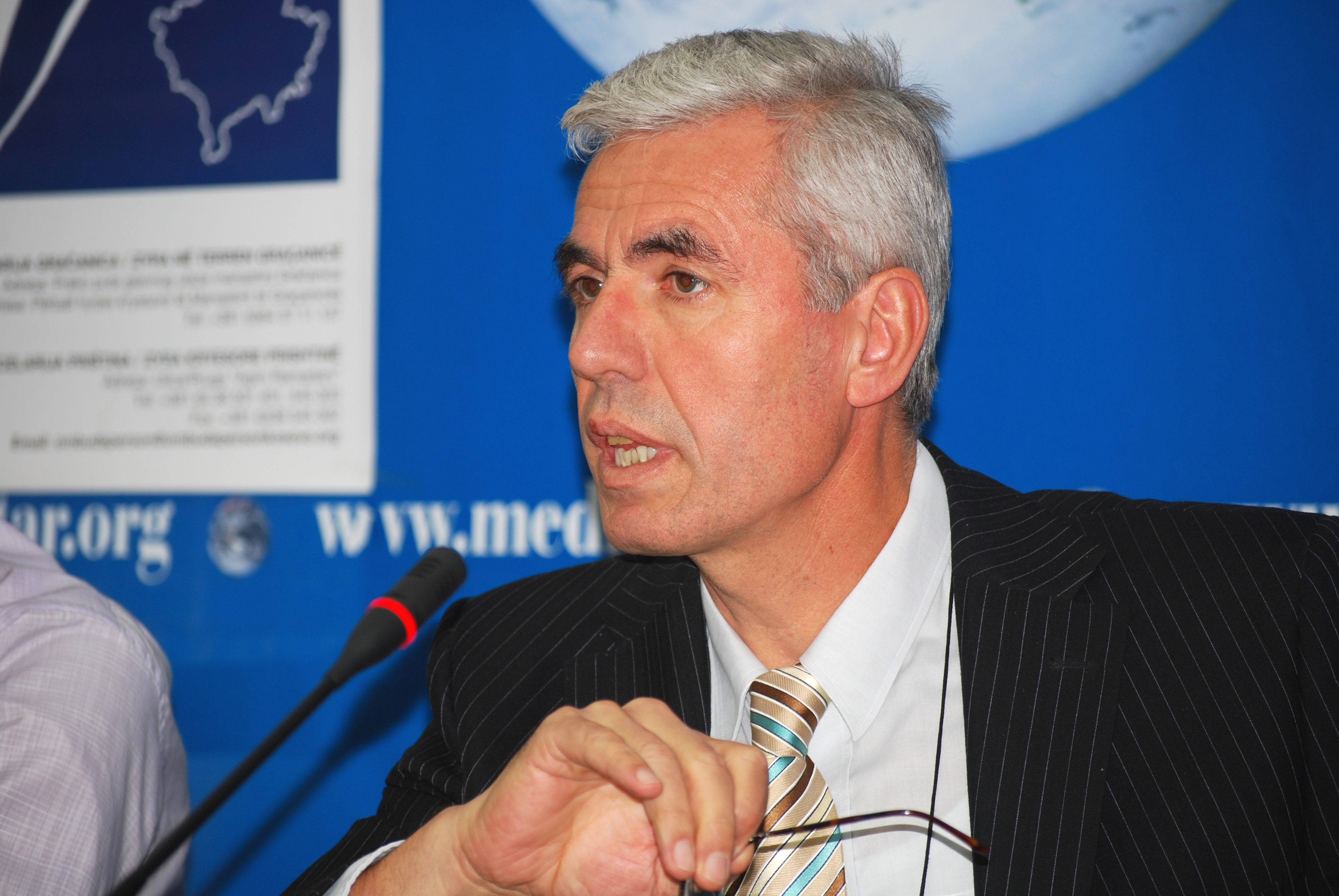 Sami Kurteshi, Kosovo's first local Ombudsperson, explains the work of his institution at a joint press conference with the OSCE Mission in Kosovo, held at the media centre in Gracanica/Gracanice, 8 September 2009.