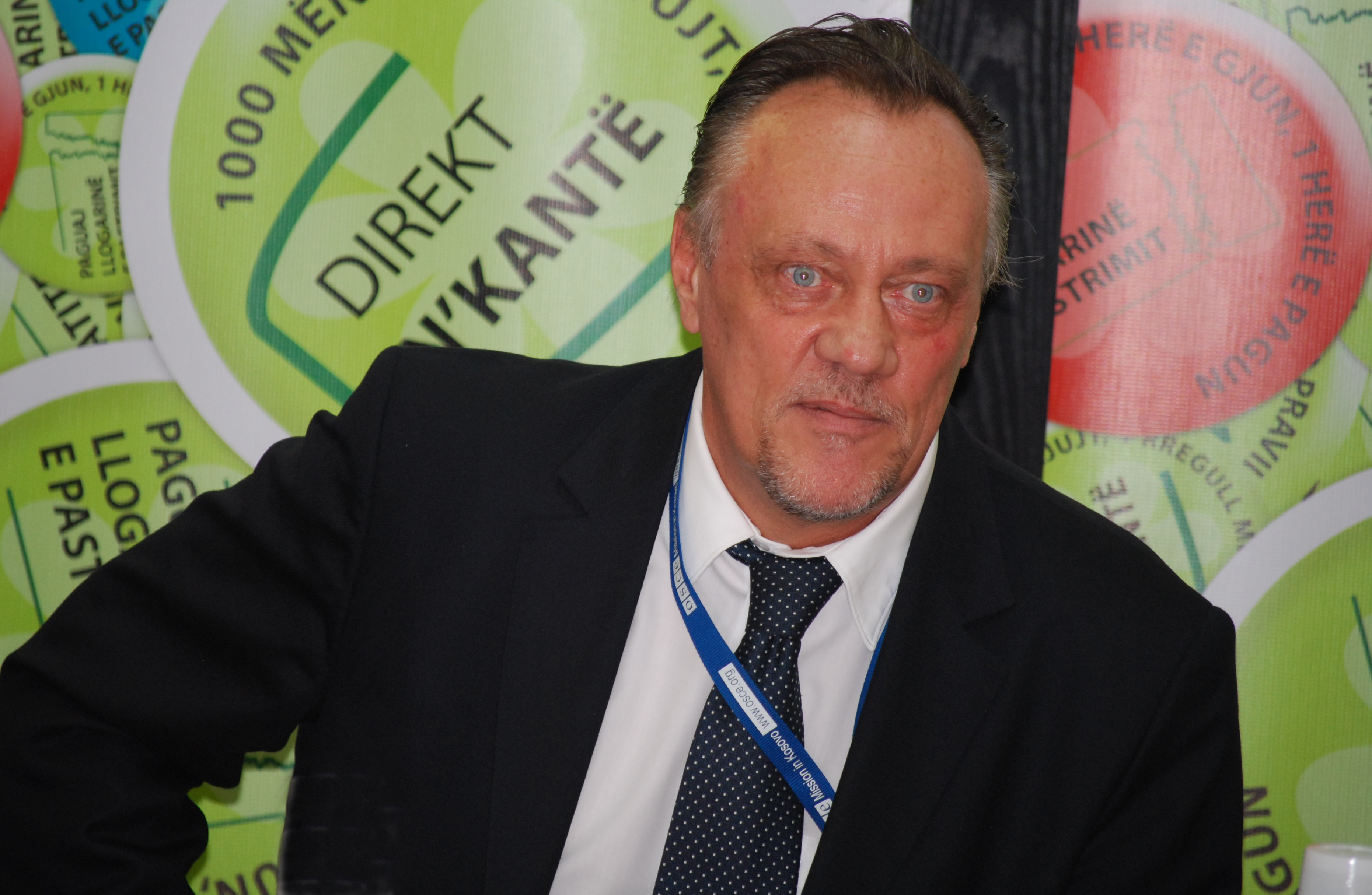 Bo-Ewert Linne, Director of the OSCE Regional Office in Prishtine/Pristina, welcomes journalists to the launch of a garbage awareness campaign organized by Prishtine/Pristina municipality and supported by the OSCE Mission in Kosovo, 30 September 2009.