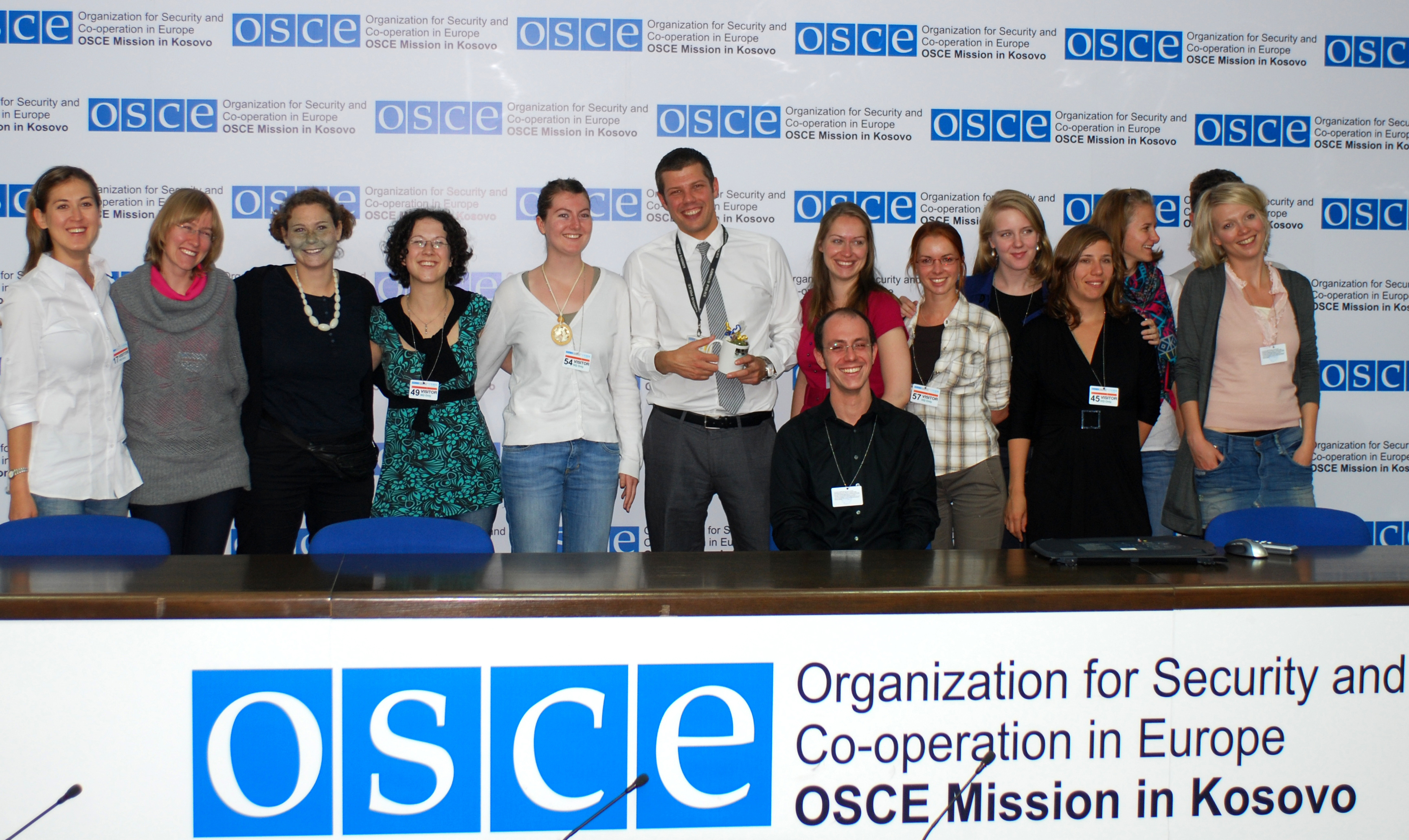 A family photo of students from various universities in Germany with Senior Public Affairs Officer Nikola Gaon (6th left), during a visit to the headquarters of the OSCE Mission in Kosovo, Prishtine/Pristina, 2 October 2009.