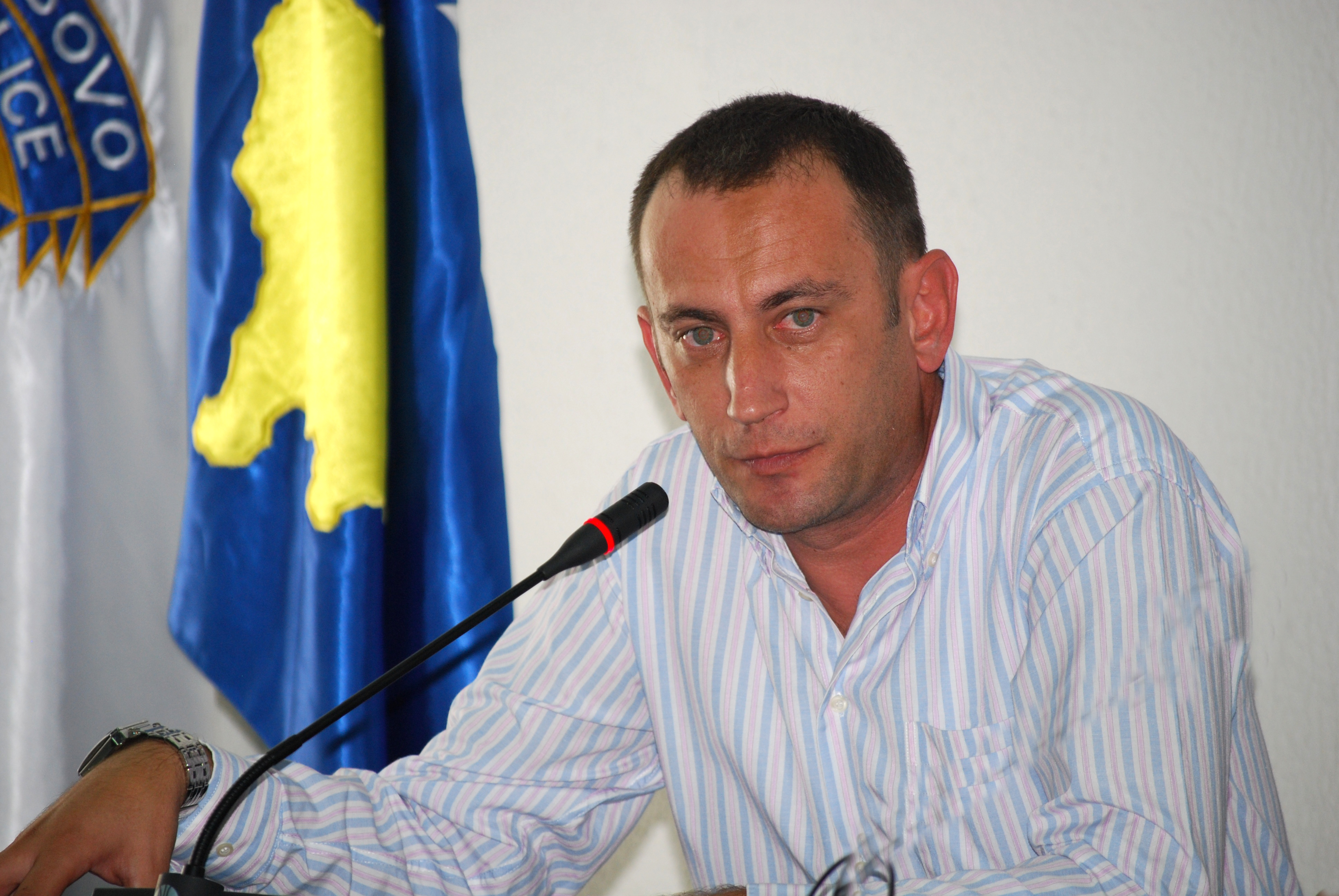 Artur Marku from the NGO Terre des Hommes talks to the media at the launch of an OSCE-sponsored campaign to combat child begging, Prishtine/Pristina, 9 October 2009.