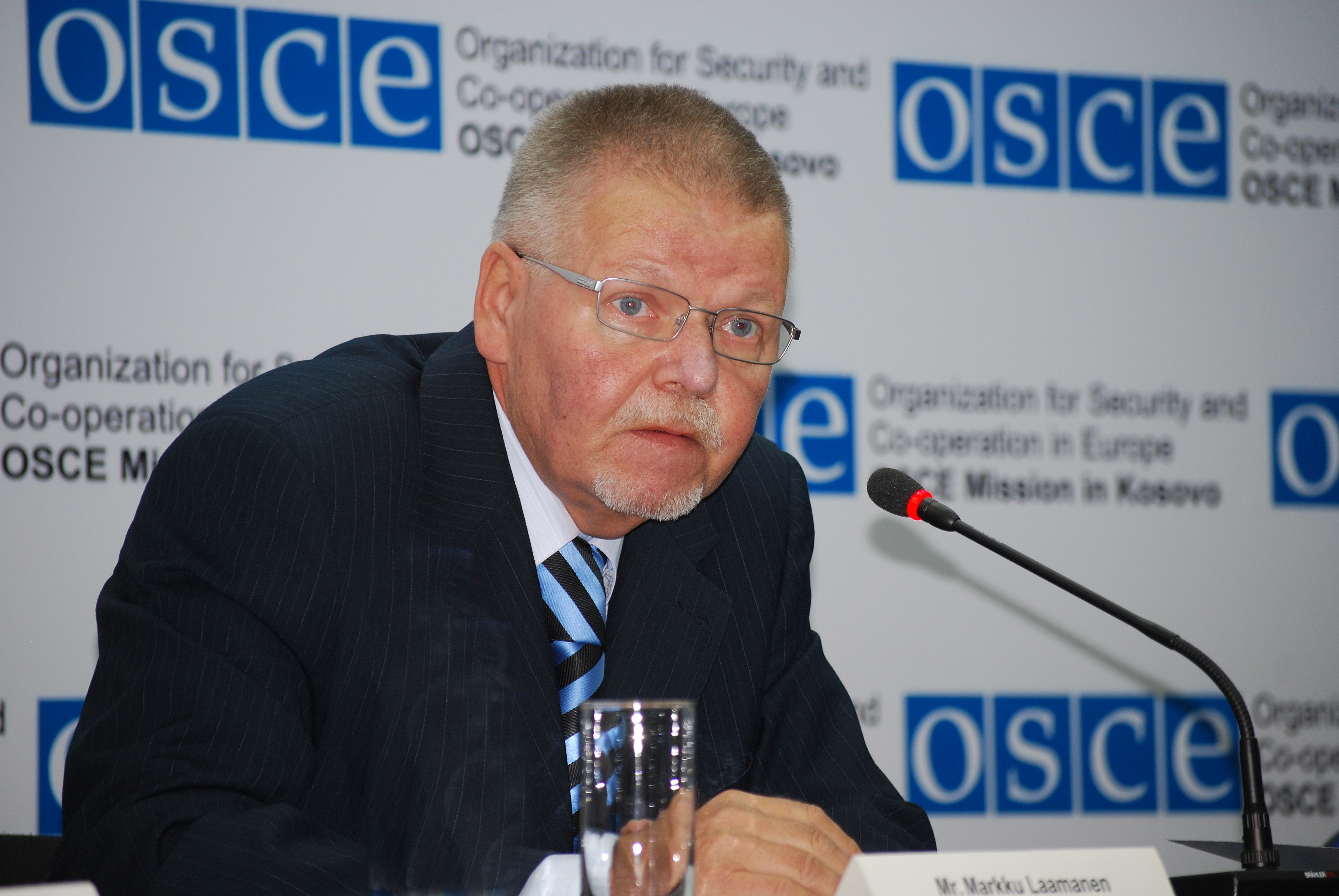 Markku Laamanen, Deputy Head of the OSCE Mission, talks at a meeting on women's equal right to property and inheritance, Prishtine/Pristina, 30 October 2009.