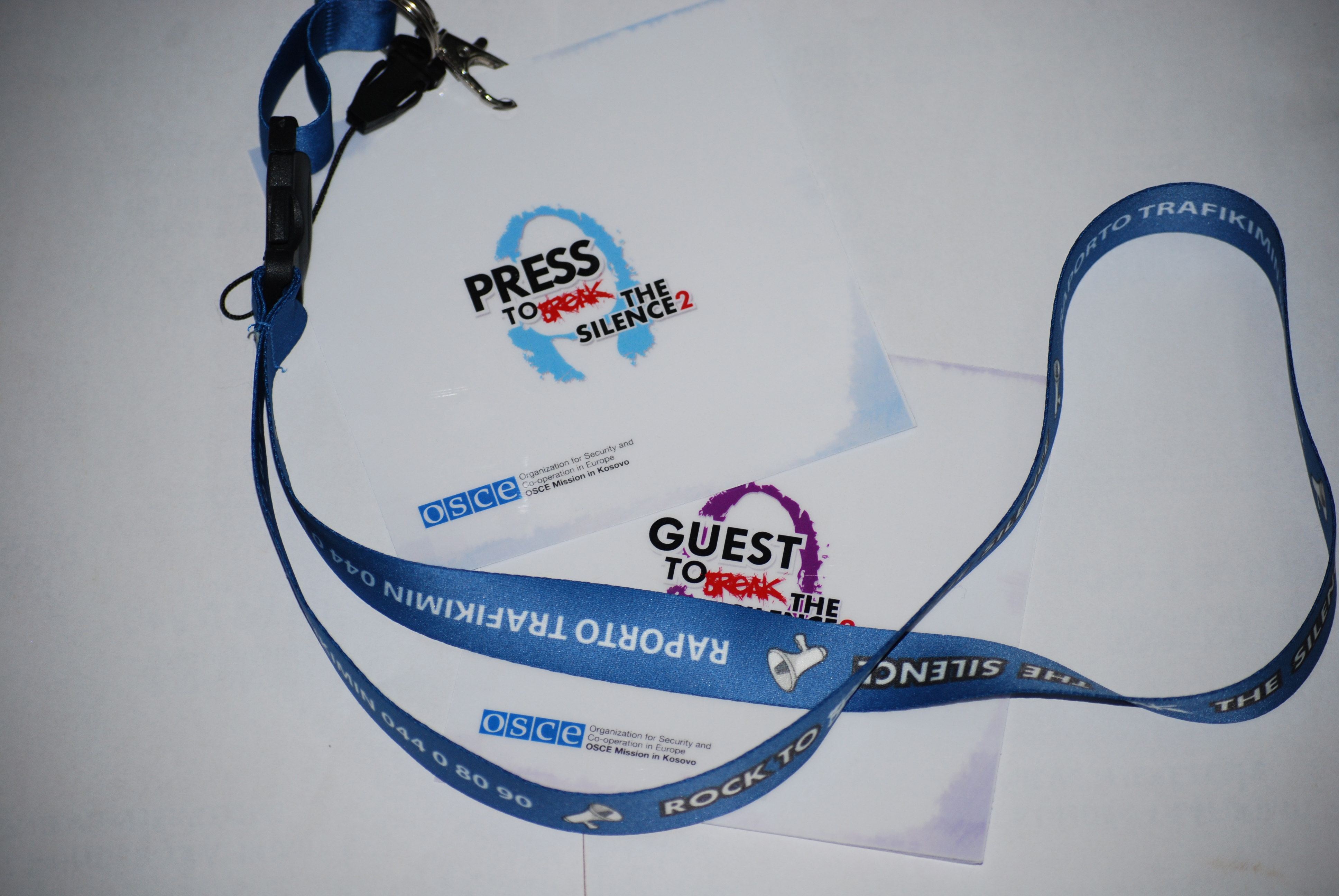 A lanyard and ID cards with the slogan 'Rock to break the silence' in Albanian and Serbian are part of the OSCE-sponsored anti-trafficking campaign that started on 26 November and will last until 10 December 2009, the International Day of Human Rights.