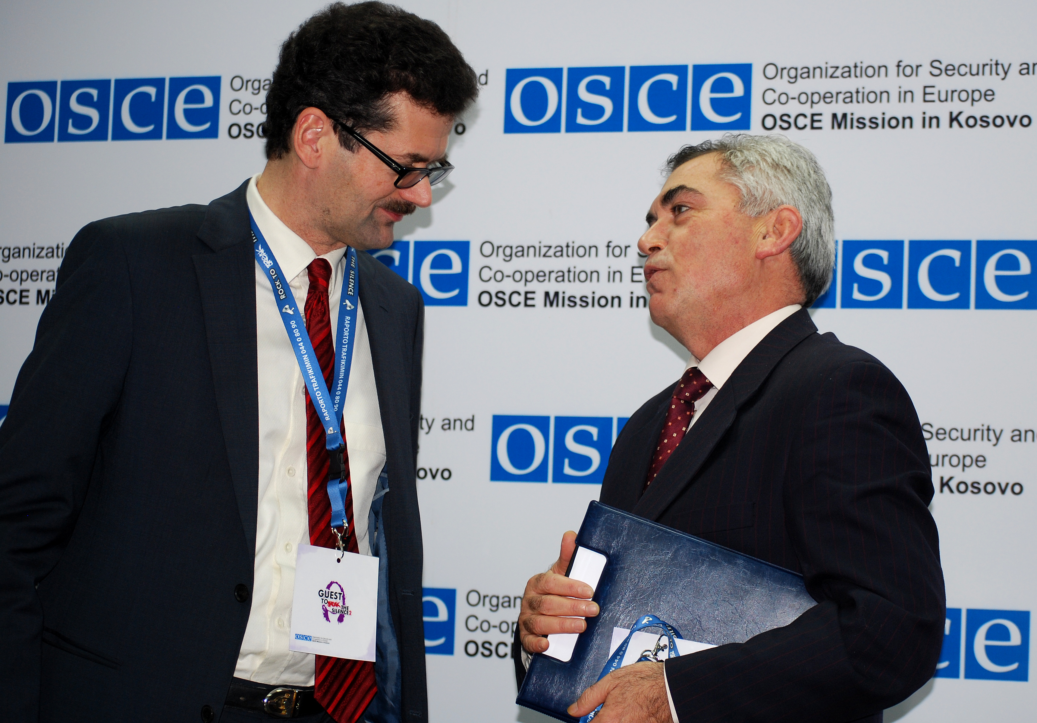 Head of the OSCE Mission in Kosovo Ambassador Werner Almhofer (l), and Fatmir Xhelili, Kosovo's Deputy Minister of the Interior, at a press conference on the launch of the Mission-supported anti-trafficking campaign, Prishtine/Pristina, 26 November 2009