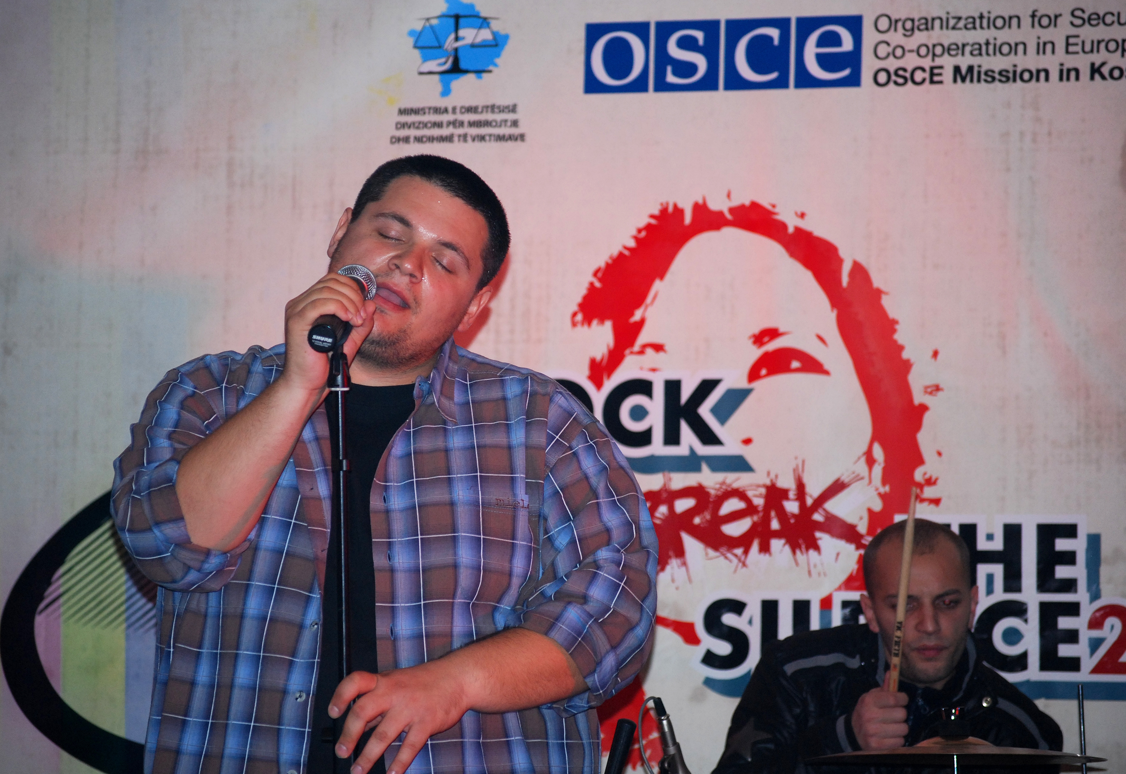 A band performs at a "Rock to break the silence 2! Report human trafficking!" concert to promote Kosovo's anti-trafficking helpline, in Prizren, 4 December 2009.