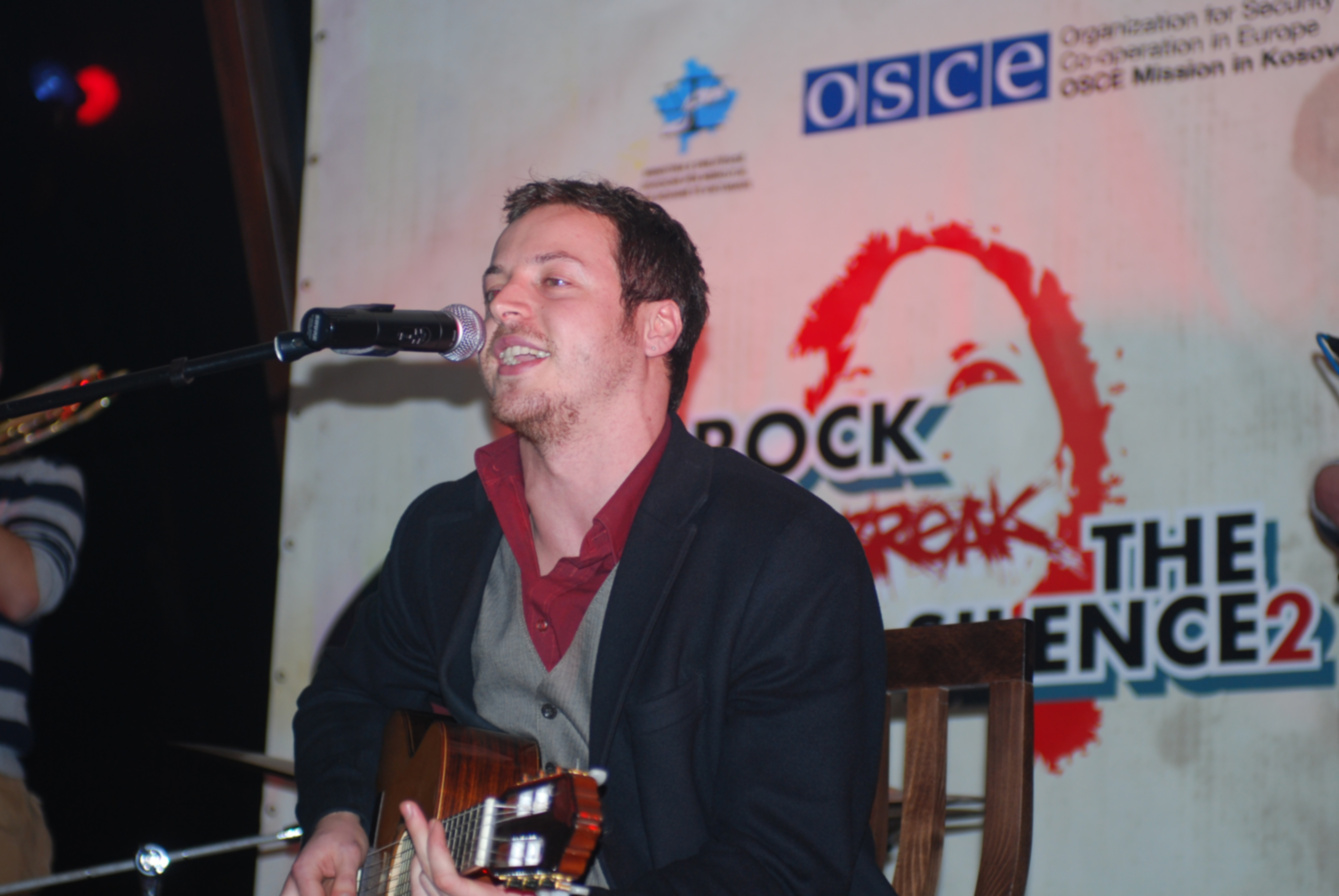 A band performs at a "Rock to break the silence 2! Report human trafficking!" concert to promote Kosovo's anti-trafficking helpline, in Prizren, 4 December 2009.