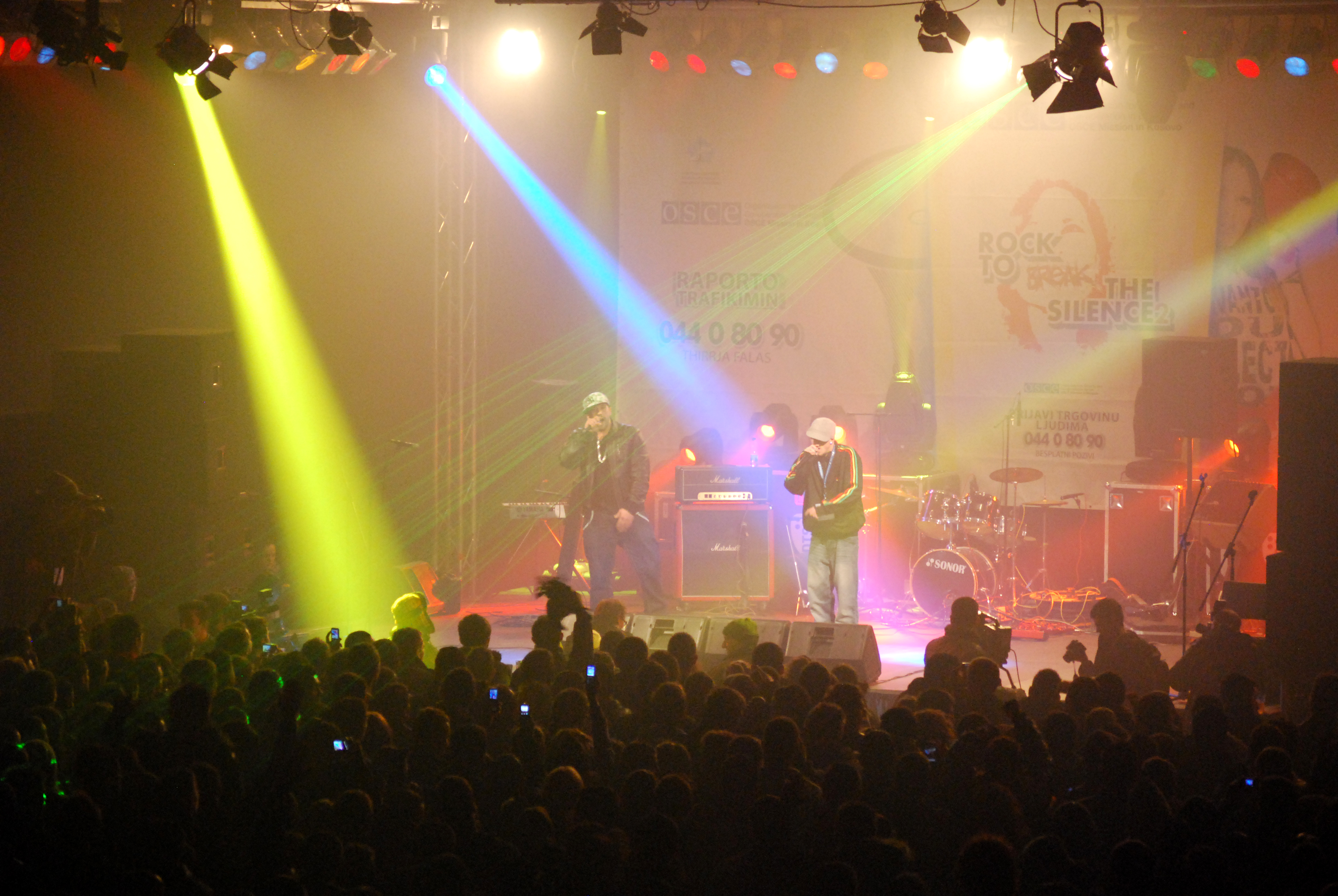 A band performs at a "Rock to break the silence 2! Report human trafficking!" concert to promote Kosovo's anti-trafficking helpline, Prishtine/Pristina, 10 December 2009.
