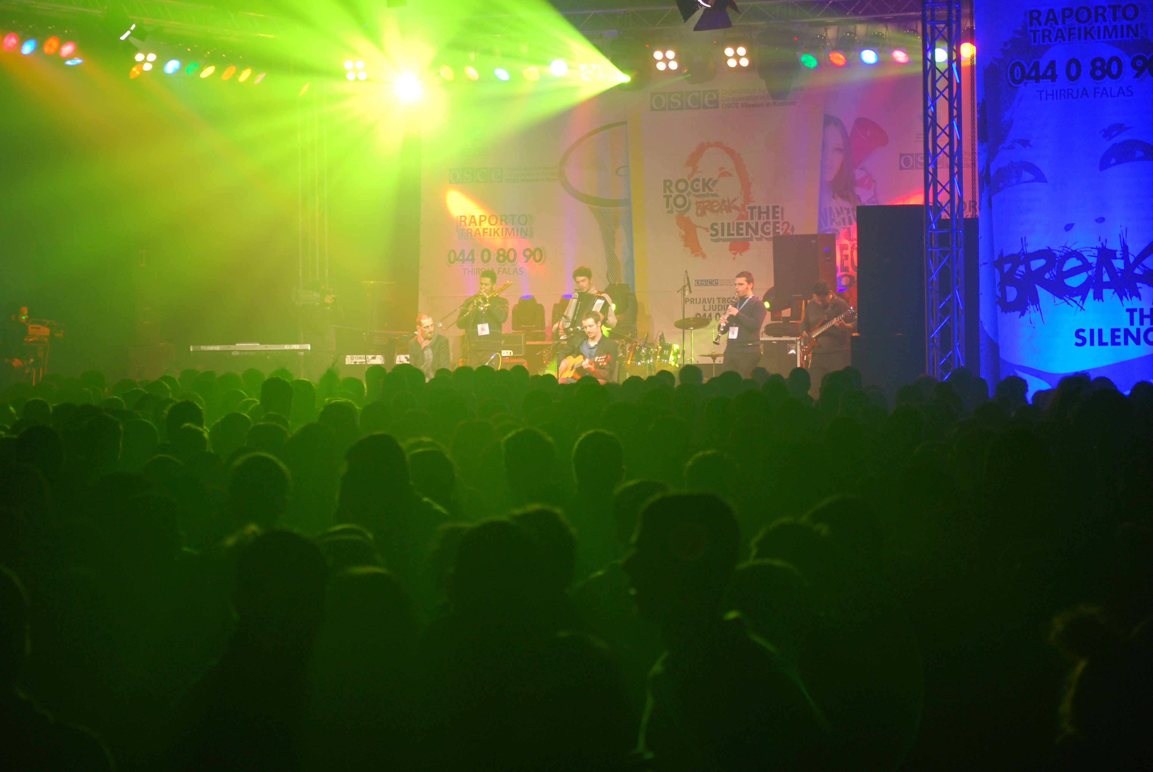 A band performs at a "Rock to break the silence 2! Report human trafficking!" concert to promote Kosovo's anti-trafficking helpline, Prishtine/Pristina, 10 December 2009.