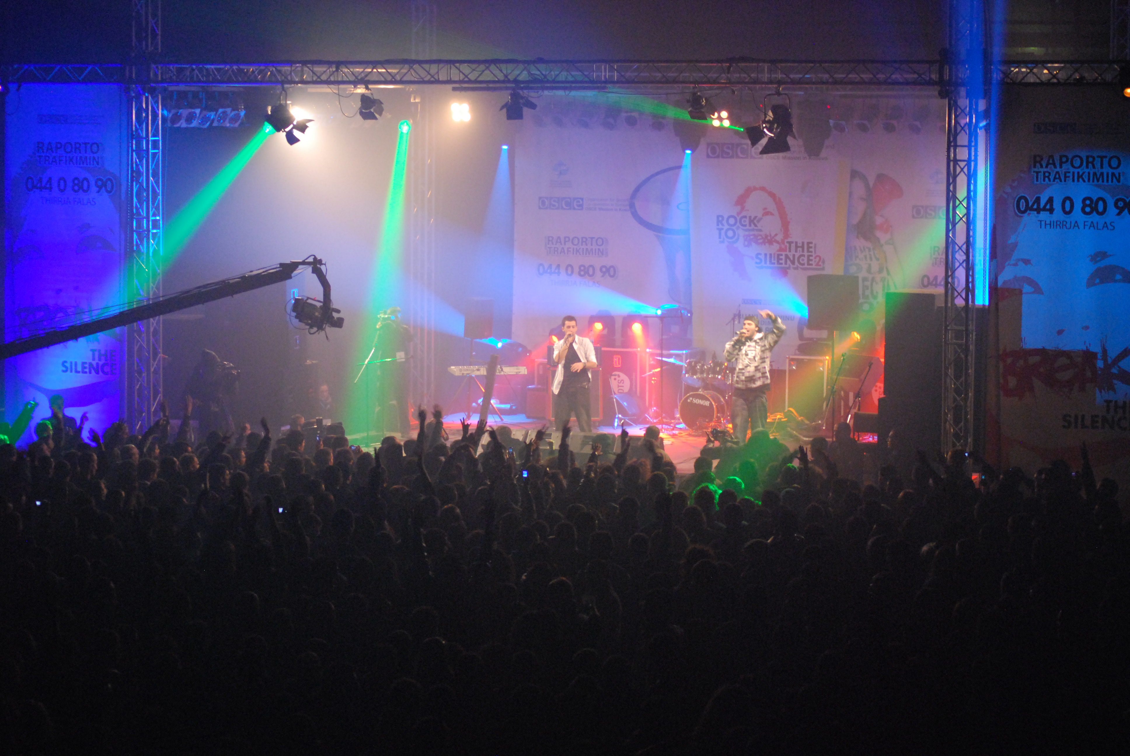 A band performs at a "Rock to break the silence 2! Report human trafficking!" concert to promote Kosovo's anti-trafficking helpline, Prishtine/Pristina, 10 December 2009.