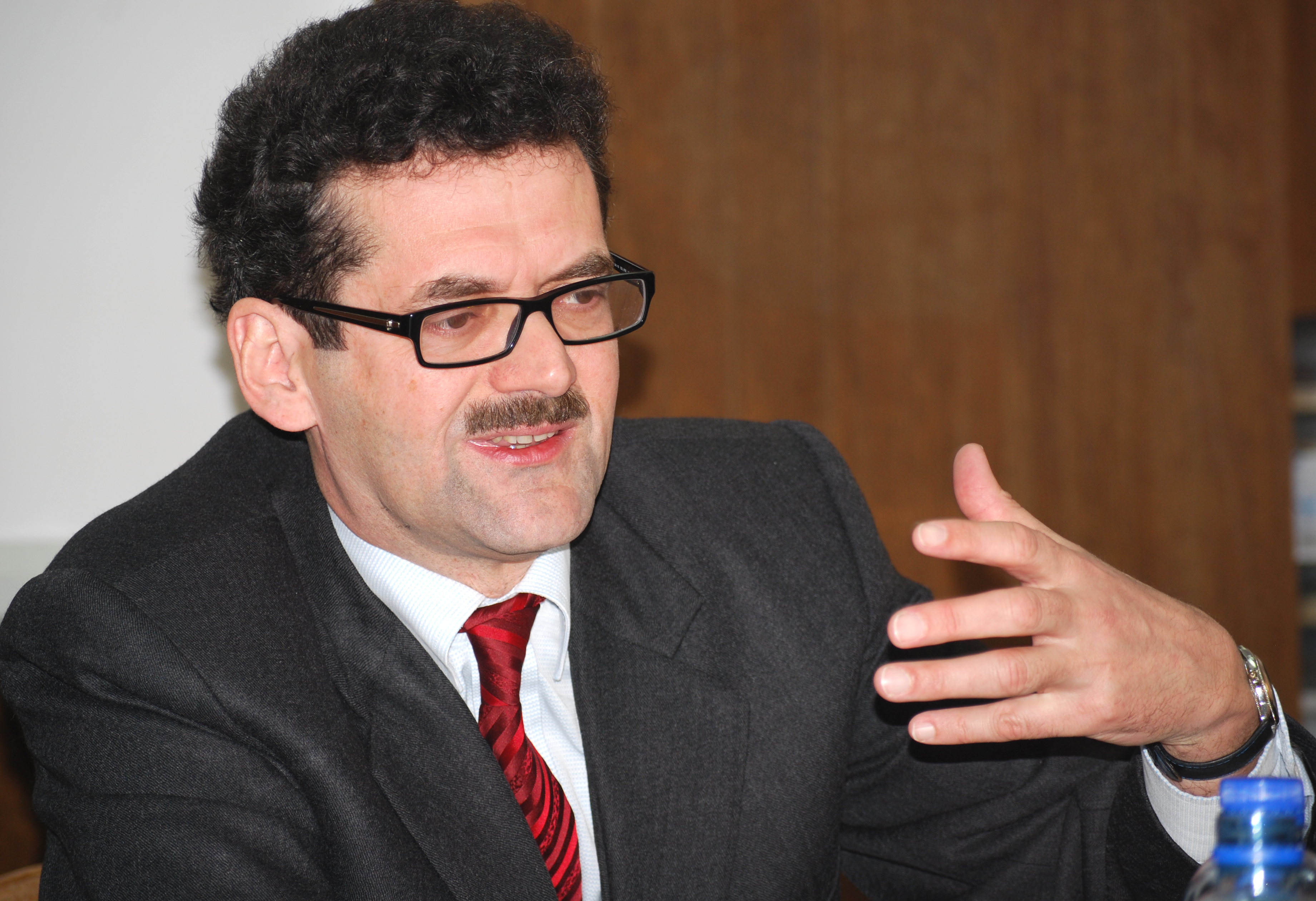 The Head of the OSCE Mission in Kosovo, Ambassador Werner Almhofer, briefs a group of students from Johns Hopkins University on the Mission's mandate during a visit to Mission headquarters in Kosovo, Prishtine/Pristina, 21 January 2010.