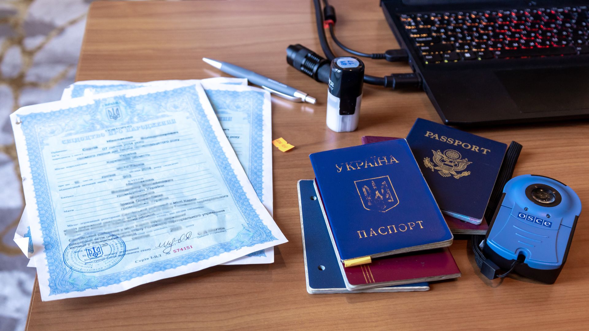 Training material at an OSCE seminar on travel document forgery for border guards from UK and Ukraine, 23 April 2025.