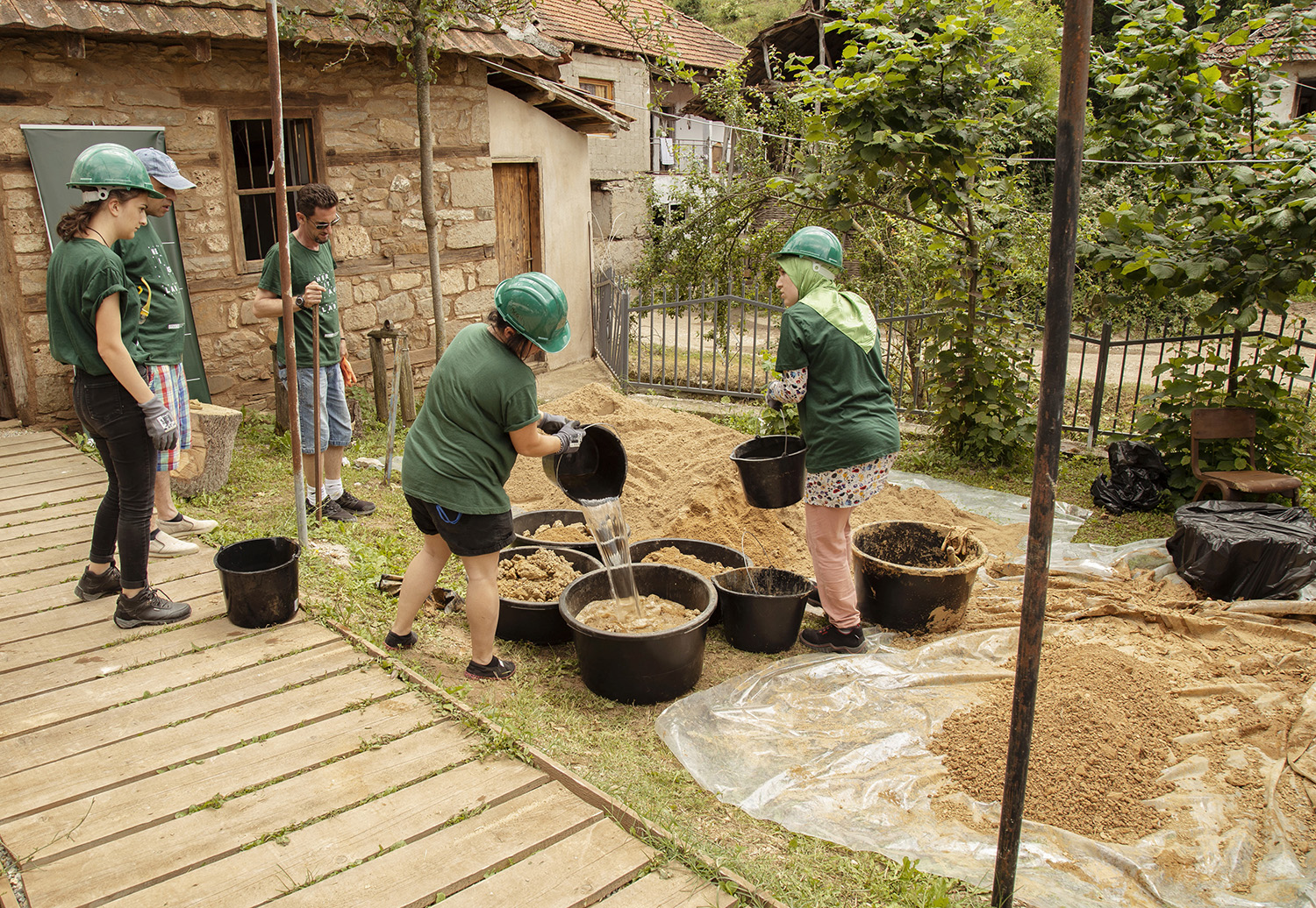 Students prepare the material to use for rebuilding the Mill wall, Letnicë/Letnica, 28 June 2019