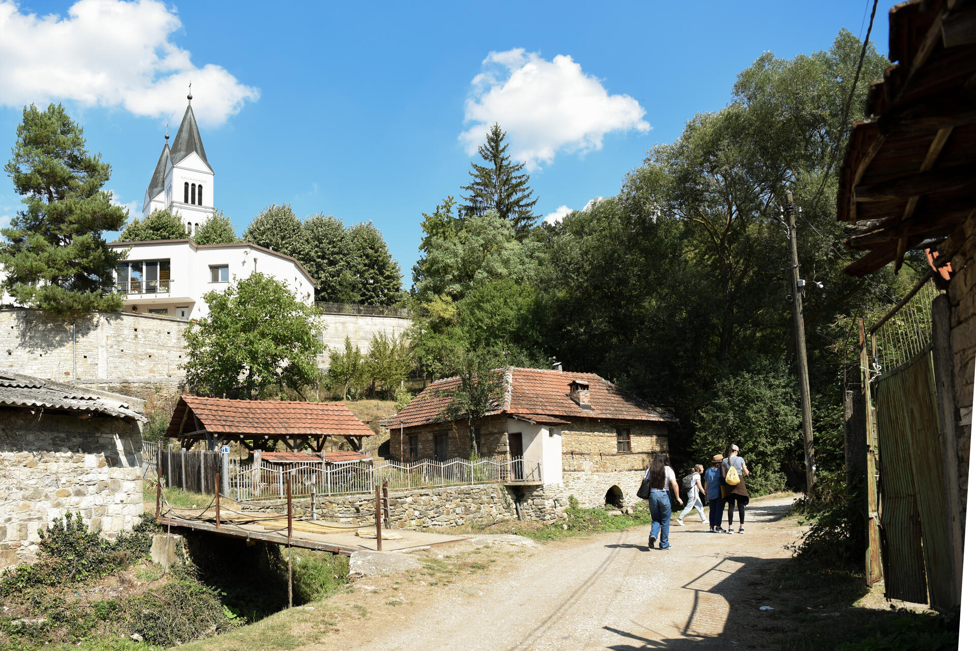 Arrival at the Church of the Assumption of Letnica as students prepare for the next phase of their project. 19 August 2025 (OSCE/Leurina Mehmeti).