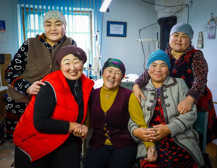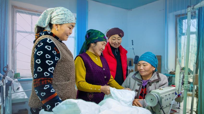 Entrepreneur Venera Kydykova with her sewing workshop team, Issyk-Kul region, 25 November 2024.