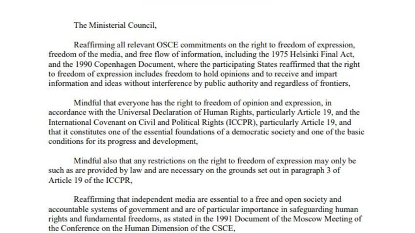 Ministerial Council Decision No. 3/18 on safety of journalists
