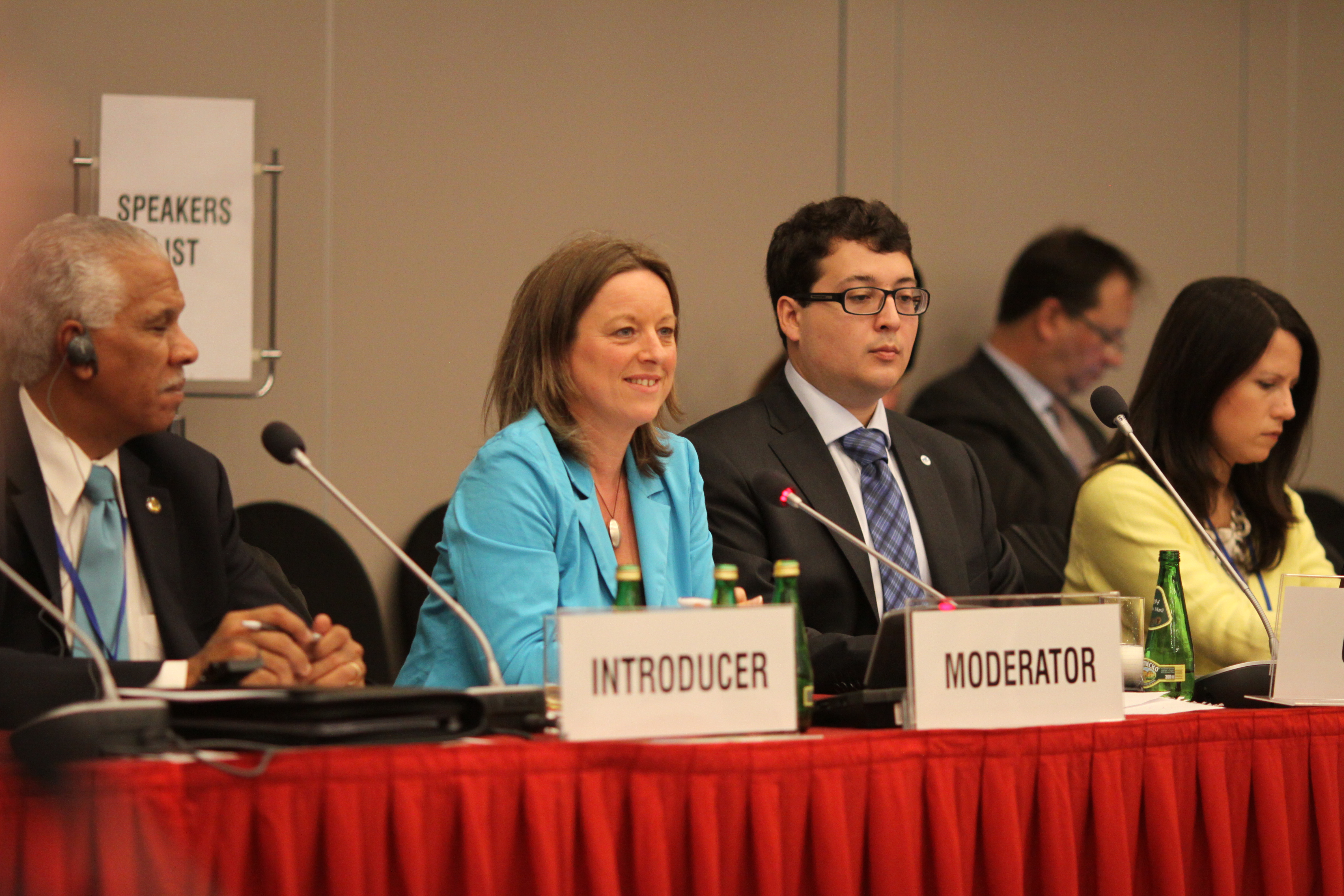 Anne Gaspard, Executive Director of Equinet, moderating the session on combating hate crimes and ensuring effective protection against discrimination, during Human Dimension Implementation Meeting in Warsaw, 29 September 2015
