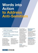 ODIHR has developed the Words Into Action to Address Anti-Semitism project to strengthen the capacity of OSCE participating States and civil society to prevent and respond to anti-Semitism.