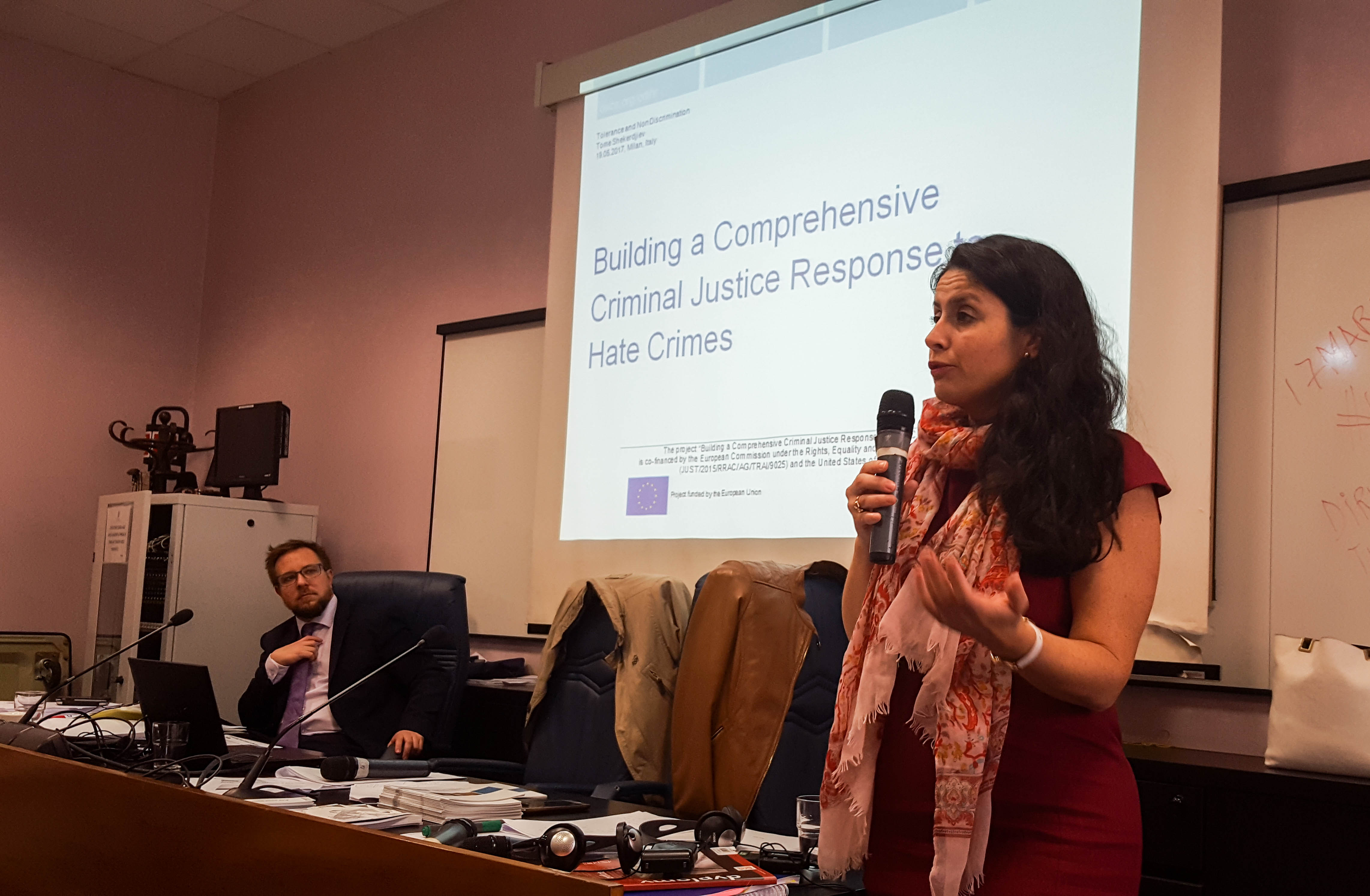 Maria Theresa Verdugo Moreno, Special Prosecutor for Hate Crimes in Málaga, Spain, addressing participants in a workshop on combating hate crime co-organized by OSCE/ODIHR, Milan, 19 May 2017.
