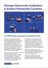 Supporting and strengthening democratic institutions and processes is the objective of ODIHR’s project Stronger Democratic Institutions in Eastern Partnership Countries: an ODIHR project supported and funded by the EU. The project aims to increase public trust in democratic institutions and foster more inclusive, accountable and transparent governance, with respect for human rights and the rule of law. Stronger democratic institutions contribute to more effective responses to current crises while building resilience to future challenges.