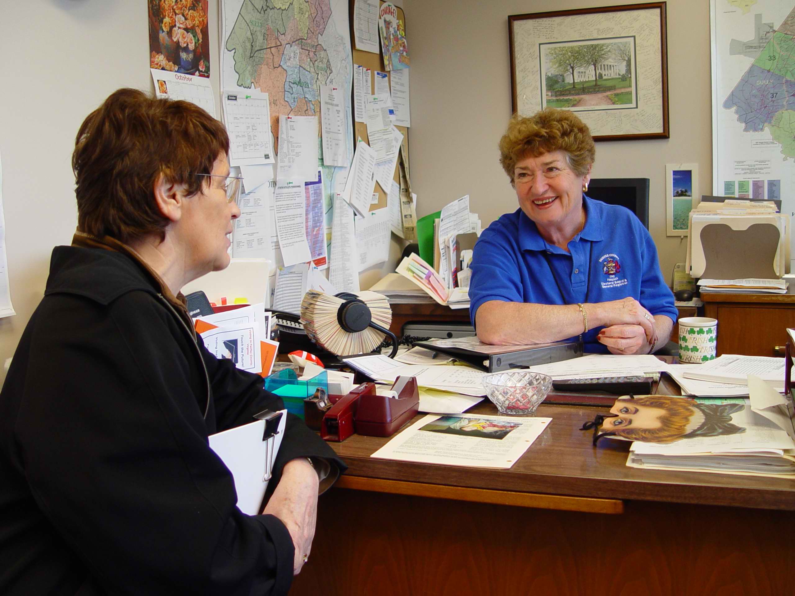 Rita Suessmuth (left), Head of the ODIHR Election Observation Mission for the 2 November 2004 election in the U.S. meets with Margaret K. Luca, Secretary of the Fairfax Electoral Board.