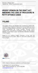 This Joint Urgent Opinion was prepared at the request of the Chairman of the Parliament of Georgia, addressed to the OSCE/ODIHR in March 2021.