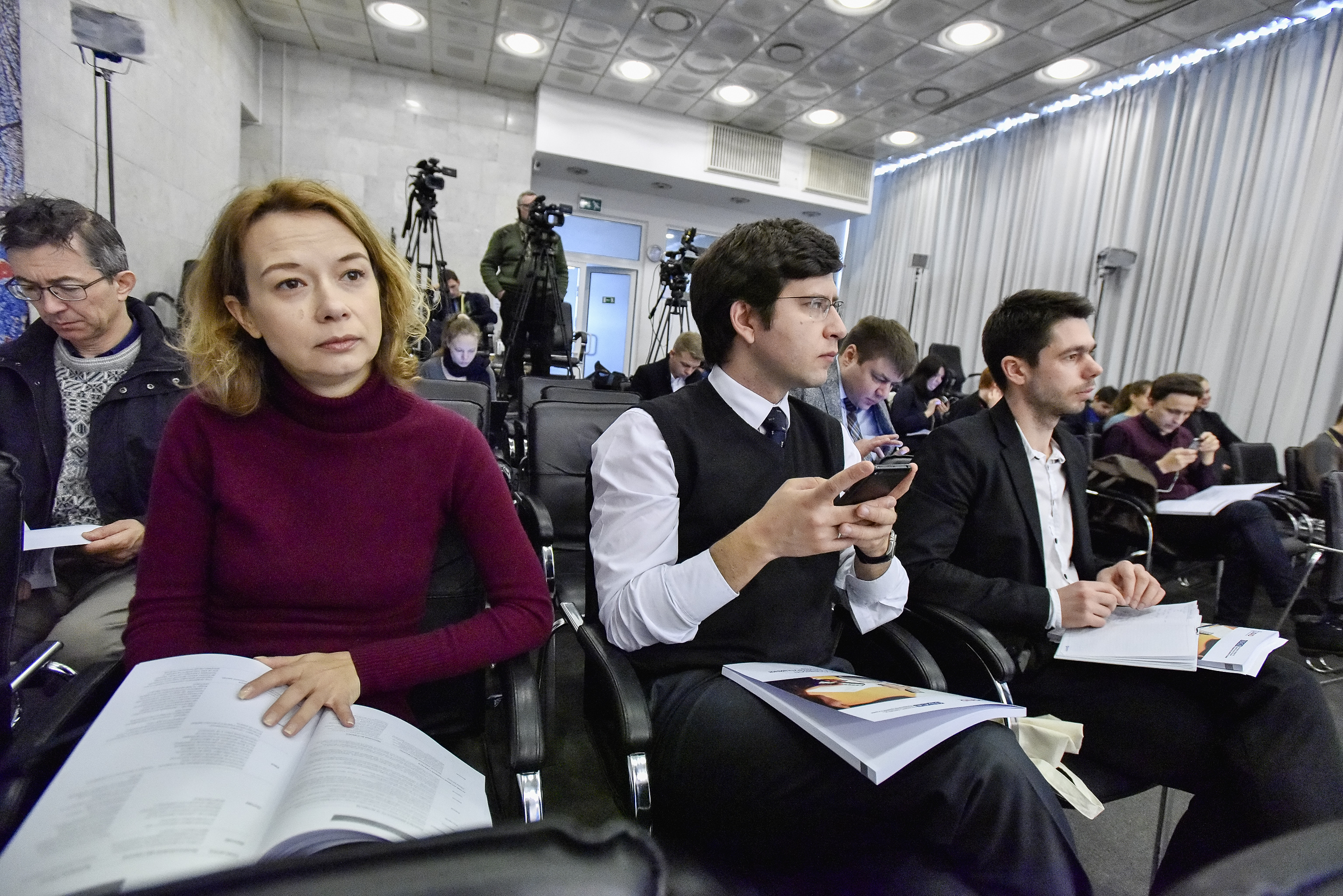 Representatives of the OSCE Project Co-ordinator in Ukraine and "Support to Anti-Corruption Champion Institutions" project at the presentation of survey on success of the anti-corruption reform, Kyiv, 13 March 2018.
