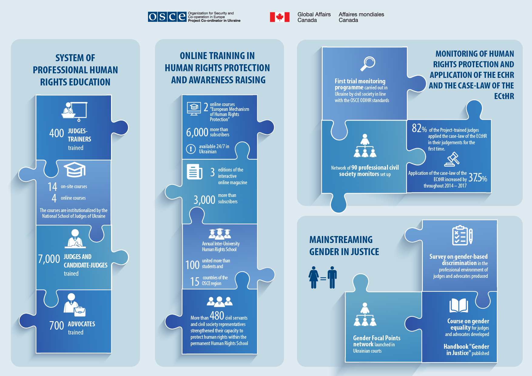 Infografics illustrating outcomes of Project “Safeguarding Human Rights through Courts”.