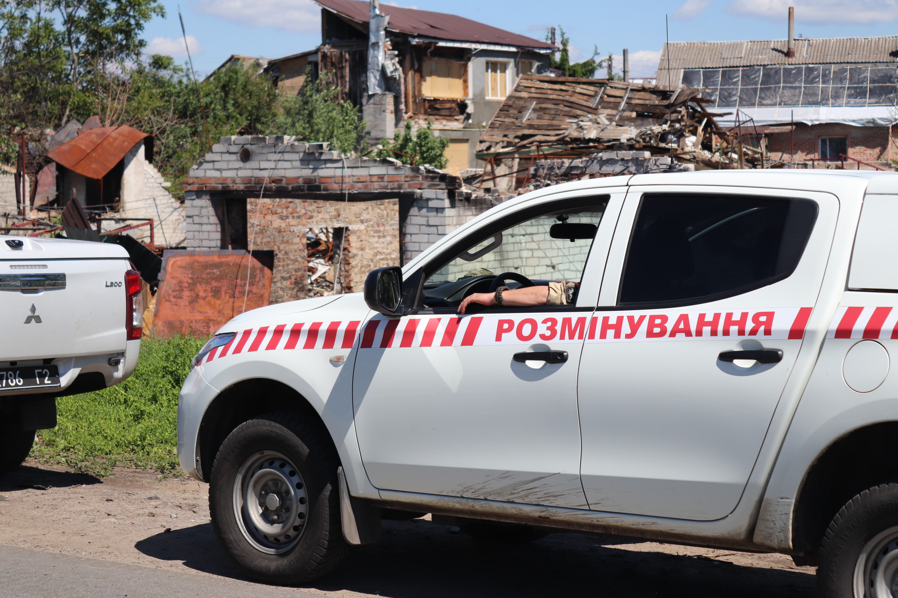 Ukraine’s deminers face an immense task of searching residential areas to find unexploded shells, mortars and bombs to enable reconstruction of buildings and safe life of local people. The OSCE Project Co-ordinator is working to build capacity of Ukraine’s humanitarian deminers by providing training and equipment, as well as policy support. Image: Kyinka village, Chernihiv Oblast.