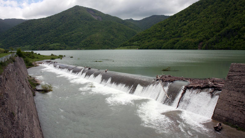 Вернер Йоханидес (слева), независимый эксперт из Австрии, и Константин Предеин, инженер-гидромеханик, оценивают работу, которую предстоит сделать. Предеин из Тбилиси; он работал над дизайном механических деталей Зонкарской водохранилищной плотины в середине 1980-х. Он знает обо всех тонкостях создания и работы дамбы, и это играет решающую роль в проекте восстановления. Его участие также привносит в проект элемент формирования доверия, 12 июля 2011 г.)