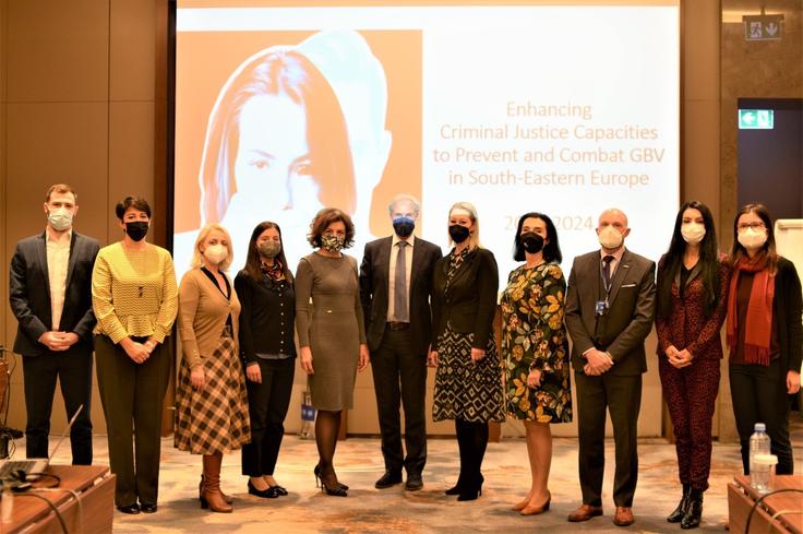 Participants at the first meeting of the Multi-Agency Committee in North Macedonia established as part of the OSCE project Enhancing Criminal Justice Capacities for Combating Gender-based Violence in South-Eastern Europe, Skopje, 23 November 2021.