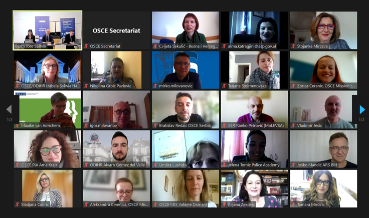 Participants at the Regional Workshop on Development of Training Curriculum for Combating Gender-based Violence in the framework of the OSCE project, ‘Enhancing Criminal Justice Capacities for Combating Gender-based Violence in South-Eastern Europe’, 24 March 2022.