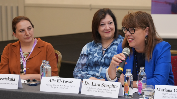 OSCE Senior Adviser on Gender Equality, Lara Scarpitta addressing the participants of the panel discussion on women’s leadership in peacebuilding and conflict, 27 June 2023.