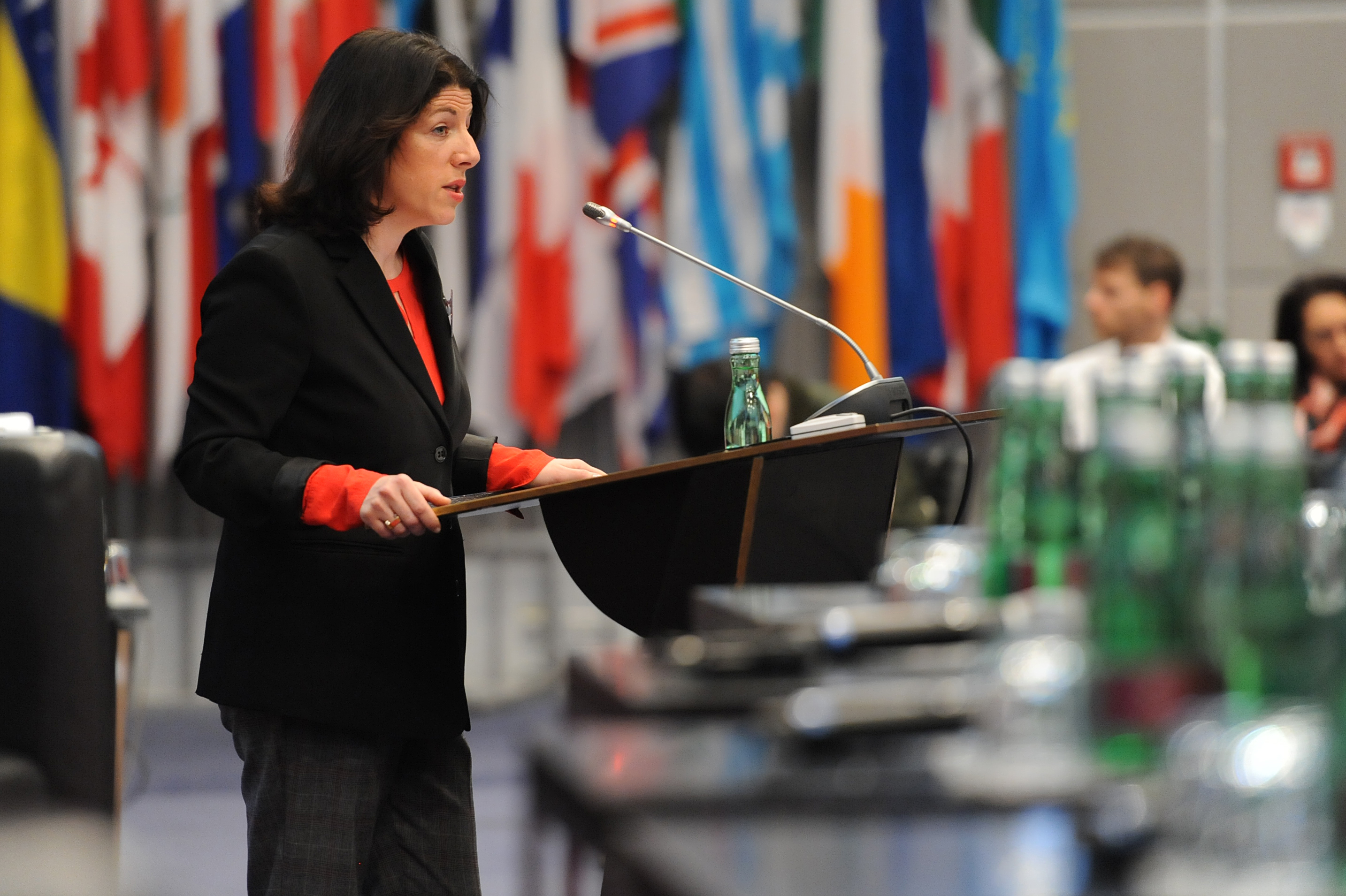 Tanja Wehsely, Chair of the Vienna City Council Committee on Finance, Economy and International Affairs, delivering the opening remarks at the OSCE Security Days event: "Creating inclusive, safe and sustainable cities: Local approaches to global challenges", Vienna, 31 March 2017.