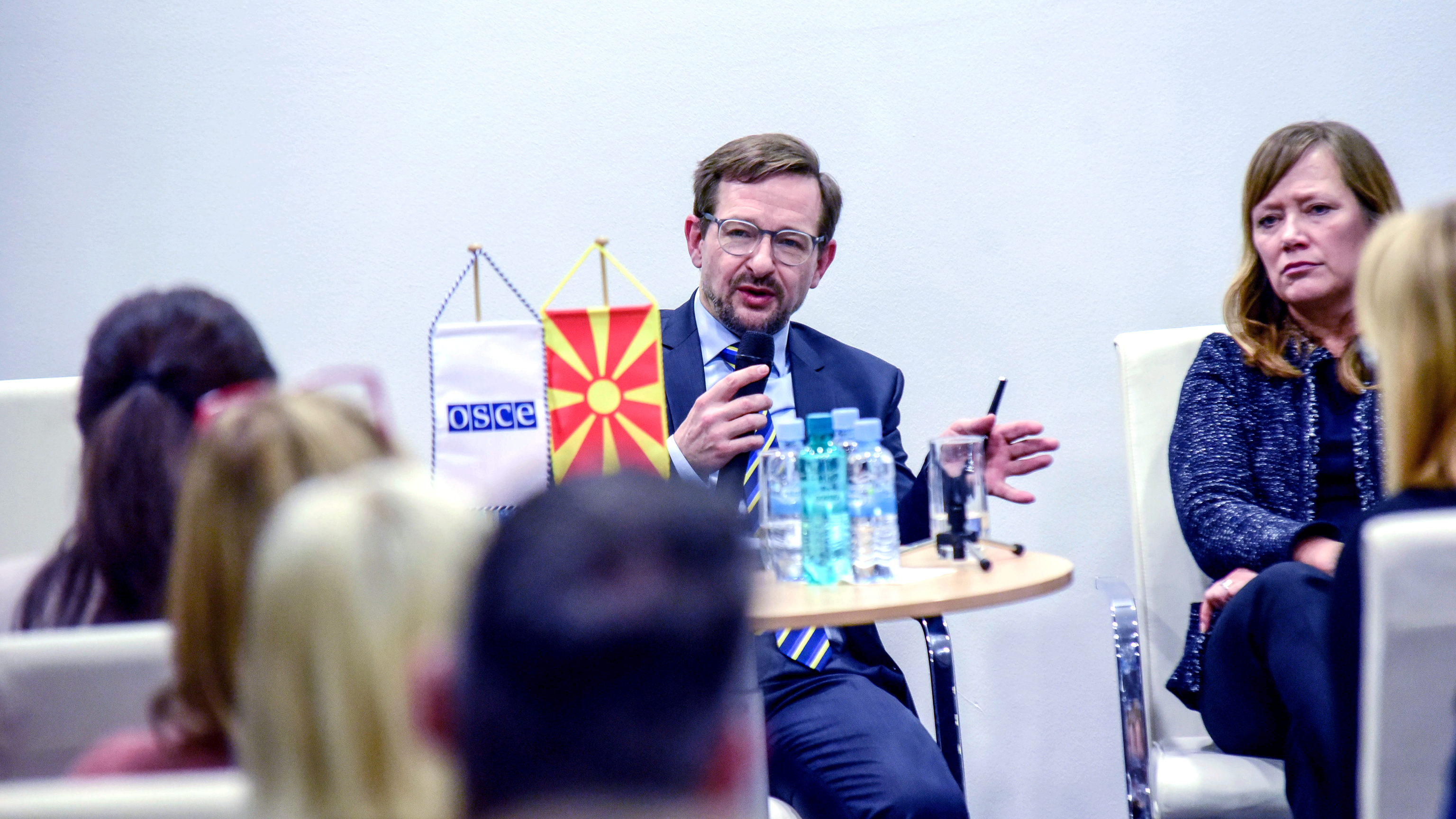 OSCE Secretary General, Thomas Greminger talking to the staff of the Mission to Skopje, 17 November 2017.