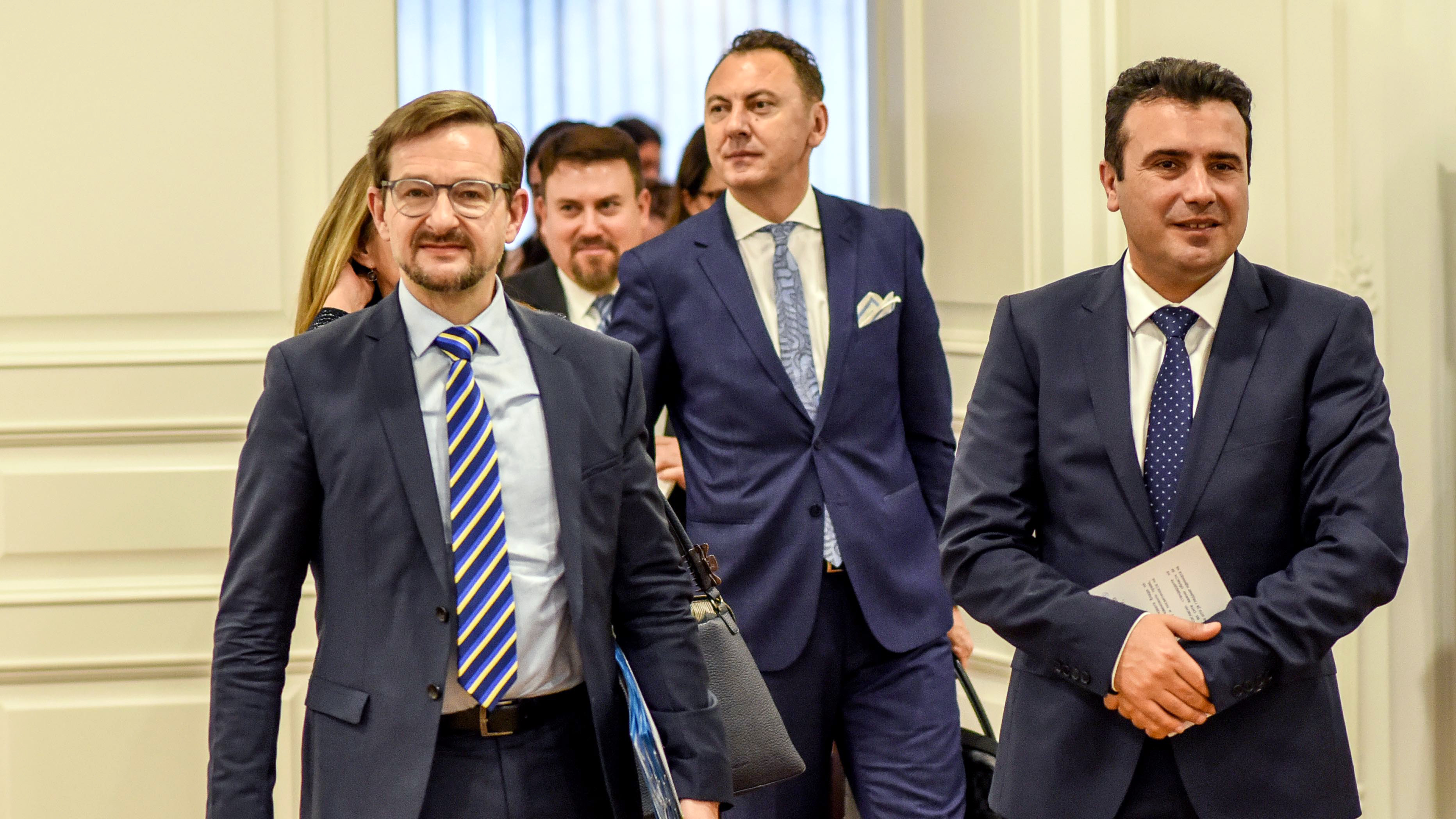 OSCE Secretary General, Thomas Greminger(l) and Prime Minister Zoran Zaev during his visit to Skopje, 16 November 2017.