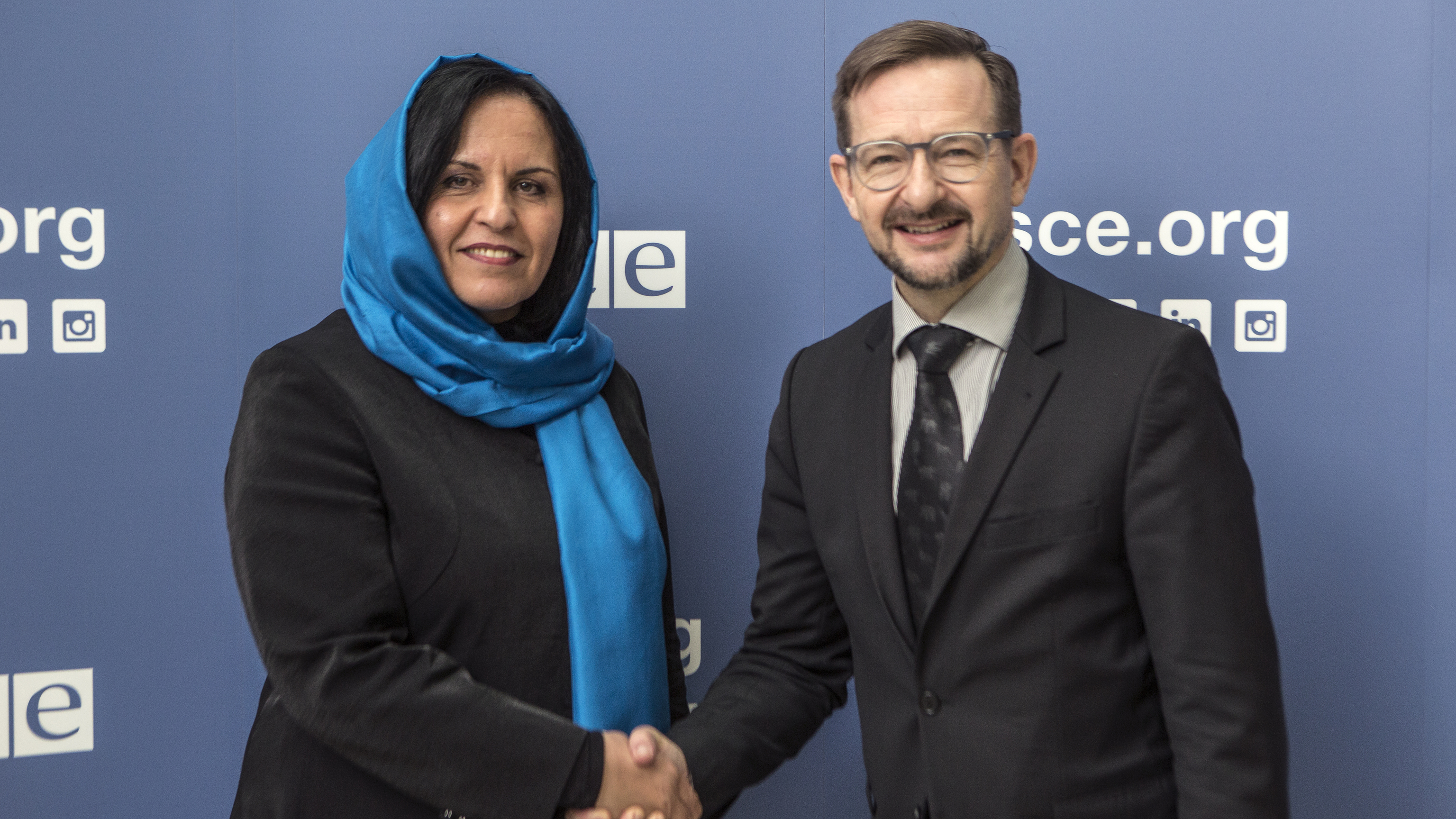 H.E. Khojesta Fana Ebrahimkhel (l), Ambassador of the Islamic Republic of Afghanistan and Permanent Representative to the United Nations and other International and Regional Organizations in Vienna with OSCE Secretary General Thomas Greminger, Vienna, 22 November 2017.