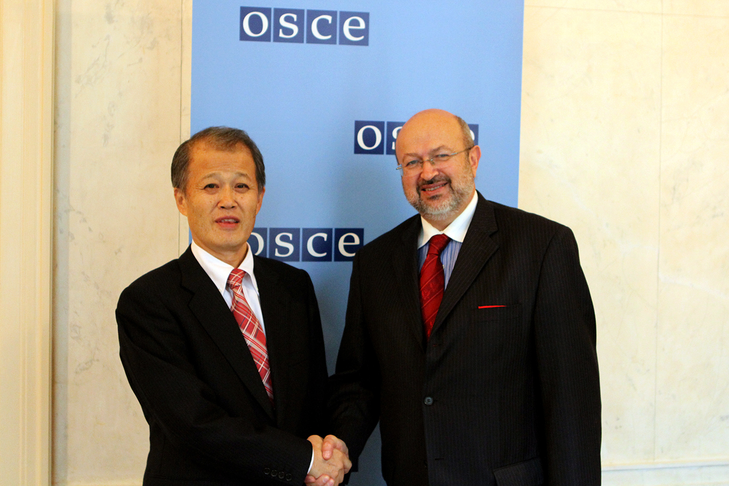 H.E. Ambassador Makoto Taketoshi (l), Japan, and the OSCE Secretary General Lamberto Zannier, Vienna, 15 November 2013.